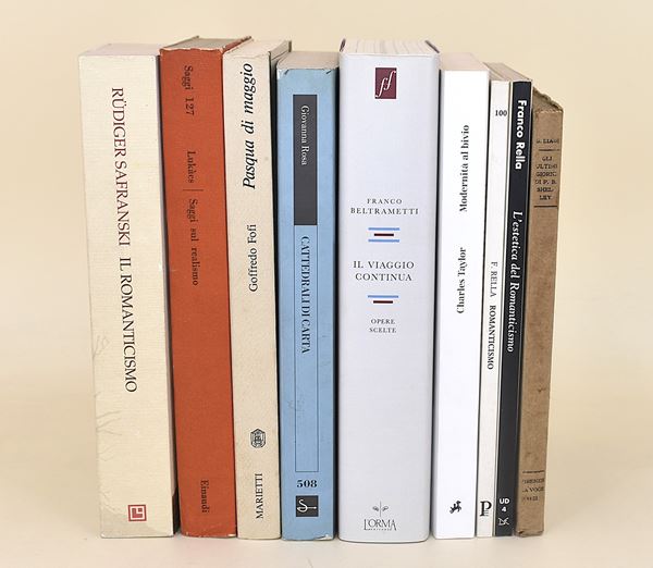Gyorgy Lukàcs, Saggi sul realismo (1950, con difetti). Franco Beltrametti, Il viaggio continua. Opere scelte (2018, DVD incluso). Franco Rella, Romanticismo (1994). Franco Rella, L'estetica del Romanticismo (1997). Rudiger Safronski, Il romanticismo. (2011). Giovanna Rosa, Cattedrali di carta. Elsa Morante romanziere (1995). Charles Taylor, Modernità al bivio. L'eredità della ragione romantica. Tre testi inediti e una conversazione (2021). Goffredo Fofi, Pasqua di maggio. Un diario pessimista. (1988). Guido Biagi, Gli ultimi giorni di Percy Bysshe Shelley. Con nuovi documenti. (1922)