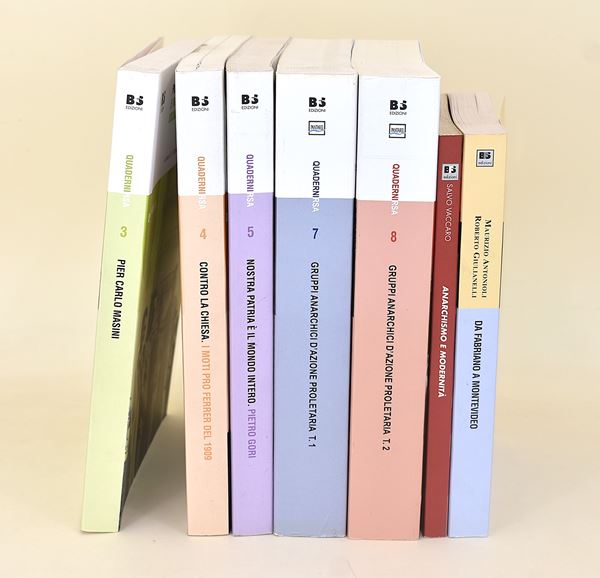 Autori vari, Pier Carlo Masini. Impegno civile e ricerca storica tra anarchismo, socialismo e democrazia (anno 2018, n.3). Autori vari, Contro la Chiesa. I moti pro Ferrer del 1909 in Italia (anno 2009, n. 4). Autori vari, Nostra patria è il mondo intero. Pietro Gori nel movimento operaio e libertario italiano e internazionale (anno 2013, n. 5). Gruppi anarchici d'azione proletaria. Le idee, i militanti, l'organizzazione. 1) Dal fronte popolare alla "Legge Truffa". La crisi politica e organizzativa dell'anarchismo. 2) Dalla rivolta di Berlino all'insurrezione di Budapest: dall'organizzazione libertaria al partito di classe (2 volumi, anno 2017, n. 7 - anno 2018, n. 8). Salvo Vaccaro, Anarchismo e modernità. (2004). Autori vari, Da Fabriano a Montevideo. Luigi Fabbri, Vita e idee di un intellettuale anarchico e antifascista. (2006).