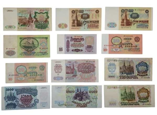 RUSSIA. URSS. Lotto di 12 banconote. Date, tagli e conservazioni varie.