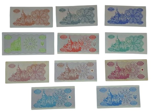 UCRAINA. Lotto di 11 banconote. Date, tagli e conservazioni varie.
