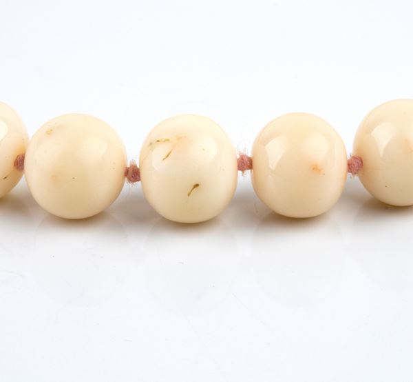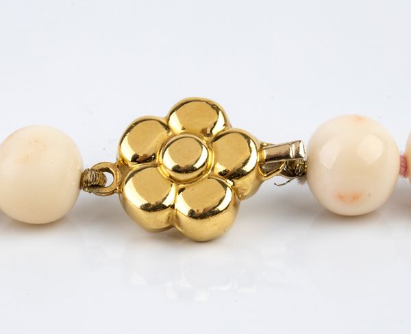one strand of Deep Sea coral beads (Corallium secundum), with 18k yellow gold floral firmness.