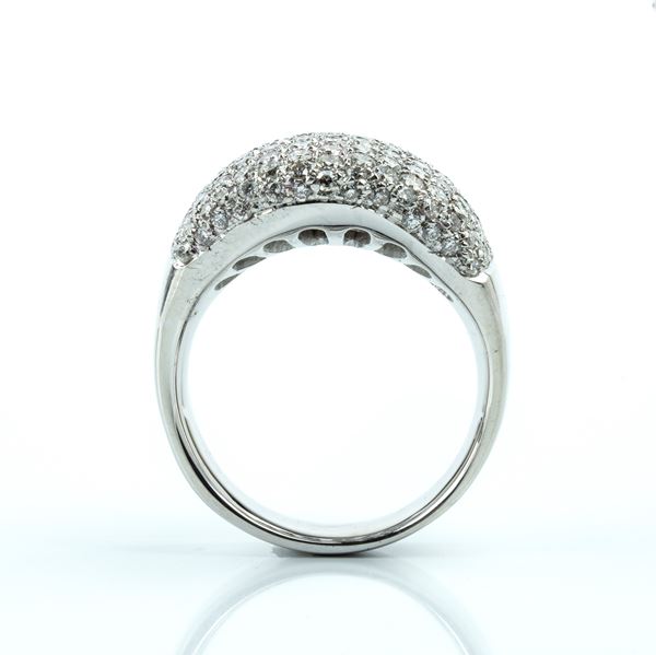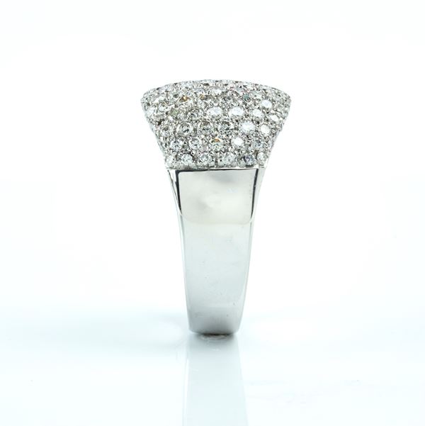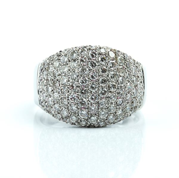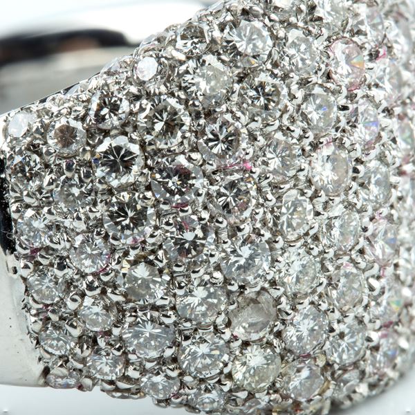 18k white gold, with pave set round brilliant cut diamonds, estimated to weigh a total of approx. 2.00 ct, F-G colour, VVS-VS clarity as gauged and graded in the mount.
