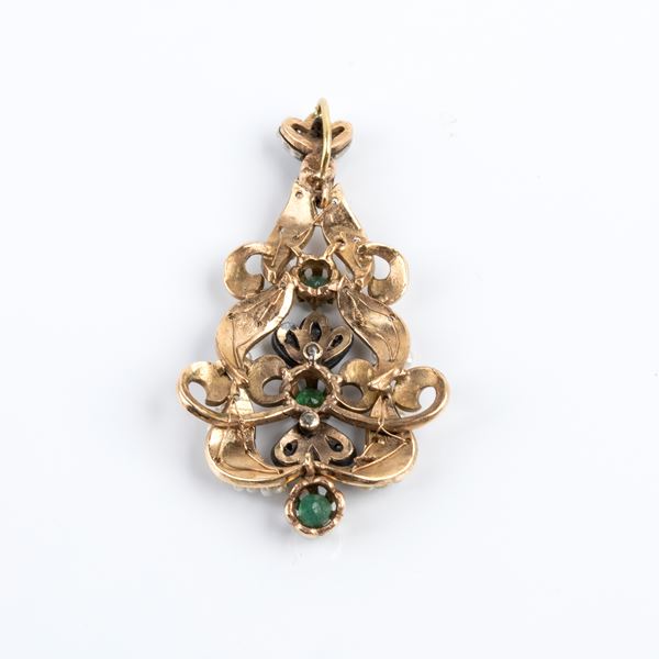 Gold and silver pendant with pearls and emeralds