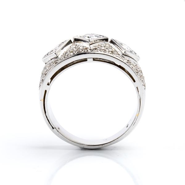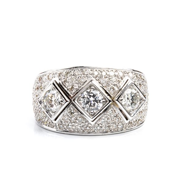 N. 03 diamonds, round shape, brilliant cut, approx. 0.90 ct, G-H, VS-SI.