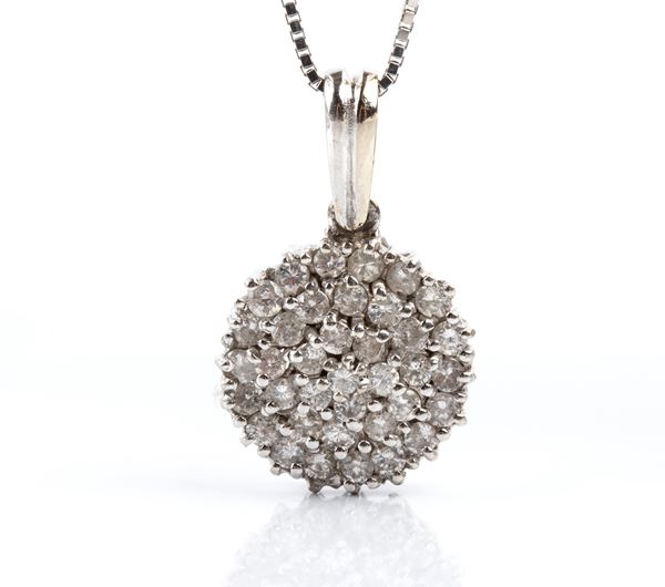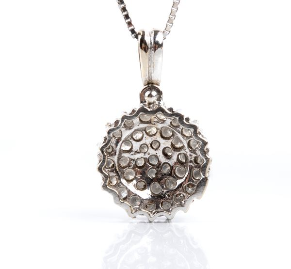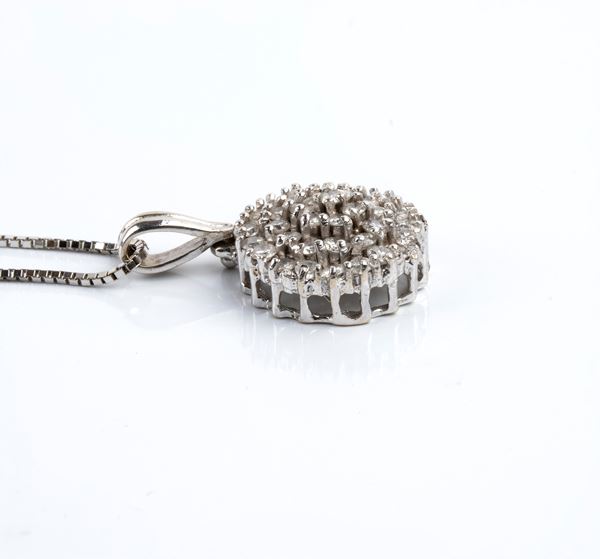 18k white gold, consisting of a necklace with a diamond flower pendant and a similar pair of earrings.