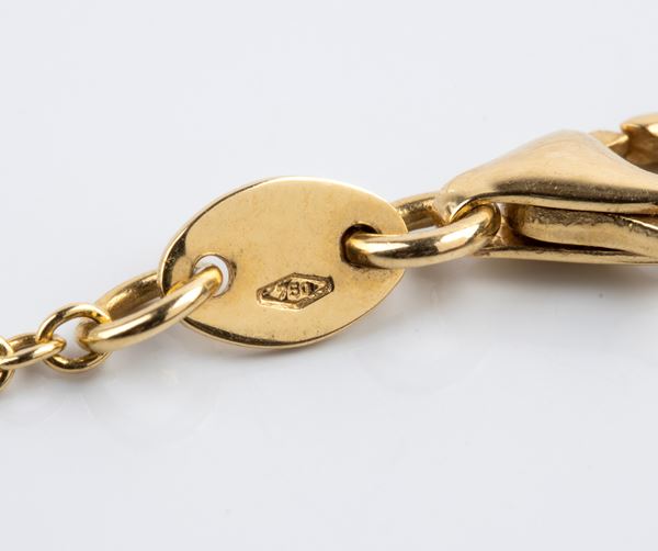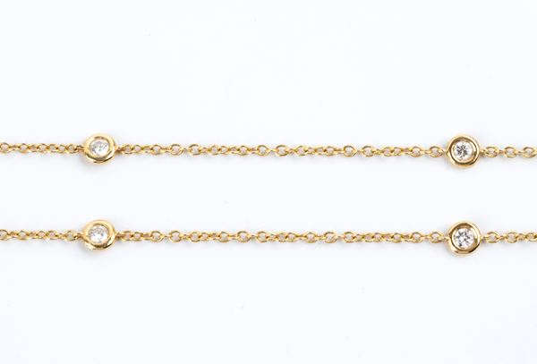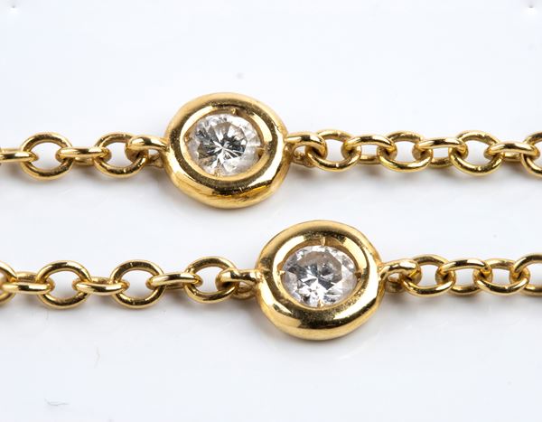 18k yellow gold roll chain, set with 09 round brilliant-cut diamonds, approx. 0.45 ct, G-H, VS-SI.