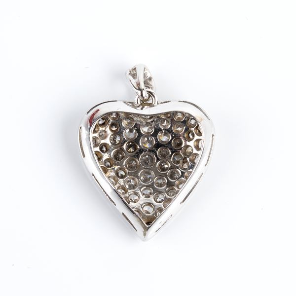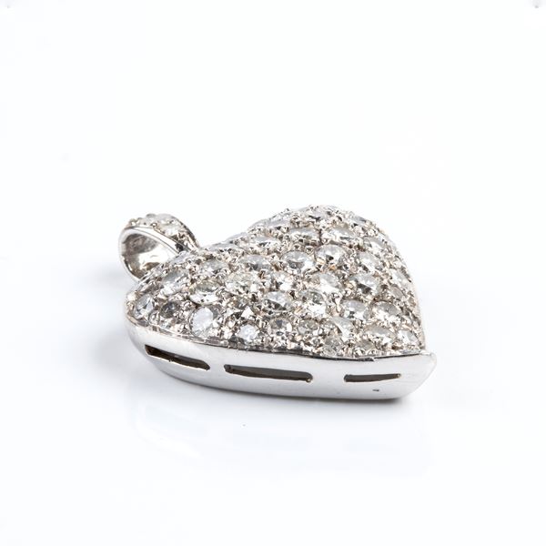 18k white gold, heart-shaped, with a pavé of round brilliant-cut and huit-huit cut diamonds, approx. 1.60 ct, G-H, VS-SI.