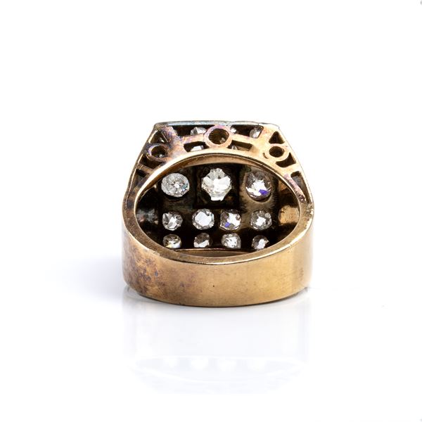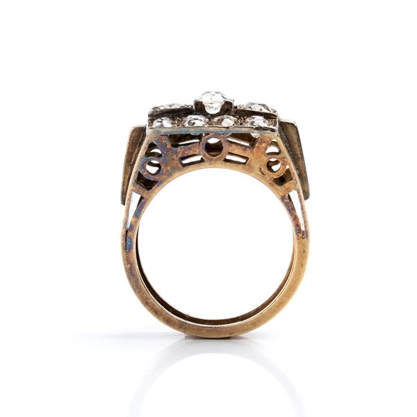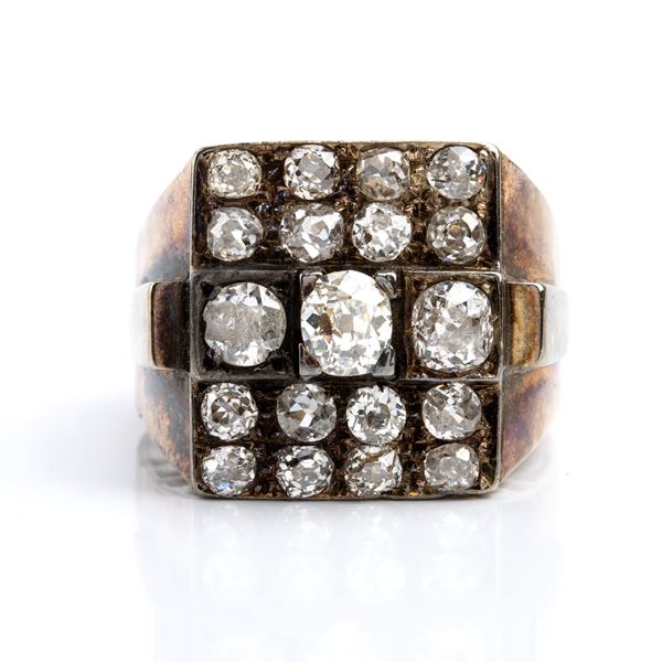 yellow and white gold, openworked, set with n. 19 old mine cut diamonds, approx. 3.50 ct.