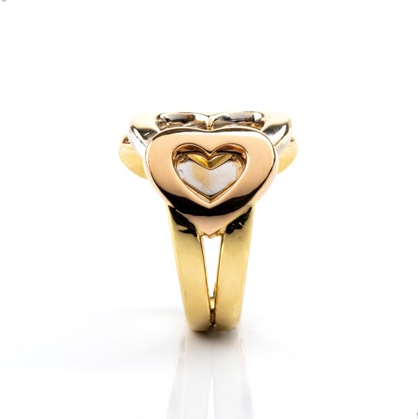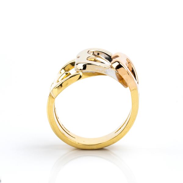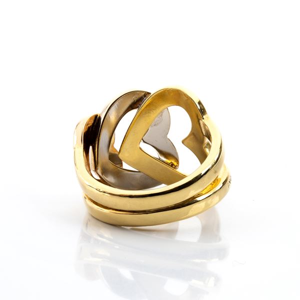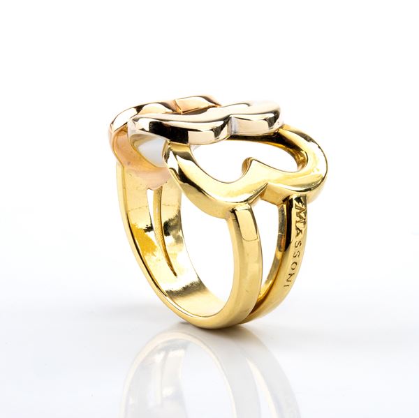 in the shape of intertwined hearts in 18k gold in three colours, yellow, white and pink. Signed MASSONI.
