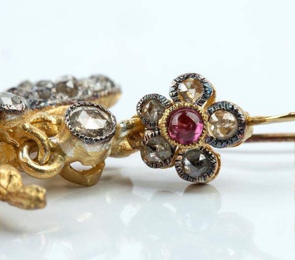 Silver, gilded silver, citrine quartz, diamond pair of earrings, 20th century