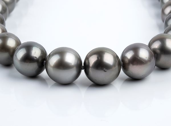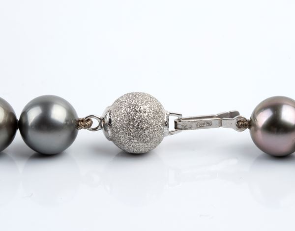 one strand of graduated ahitian pearl necklace with 18k white gold ball clasp.