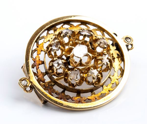 Pendant-brooch diameter: 2.5 cm. Ring: IT size 18 - US size 8 1/2. Total weight: 14 g.