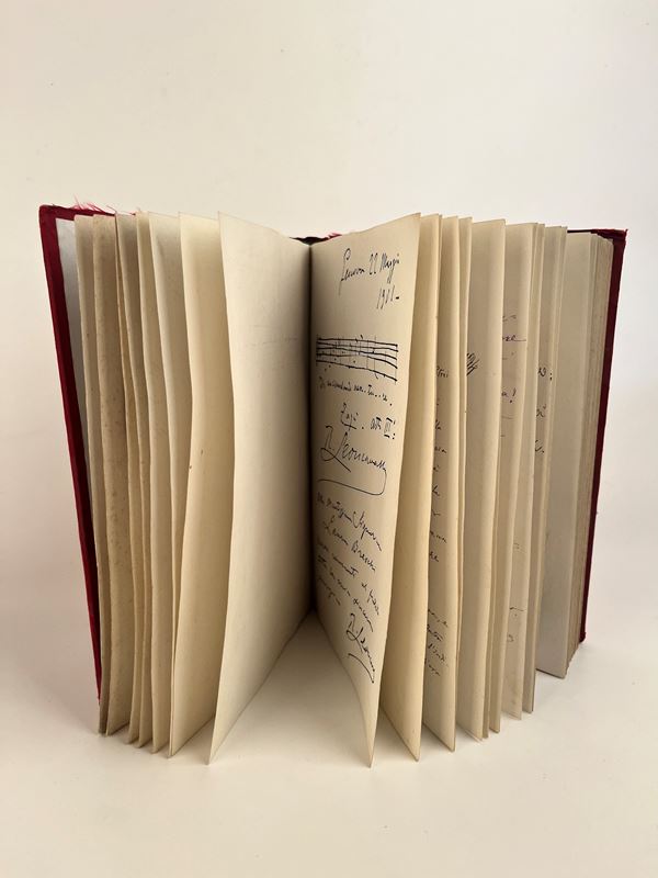 Friendship diary, liber amicarum, which belonged to Laura Breschi, nephew of Anton Giulio Barrili, containing several autographed dedications, original drawings, musical lines by well-known artists from the late 19th and early 20th centuries.