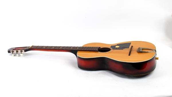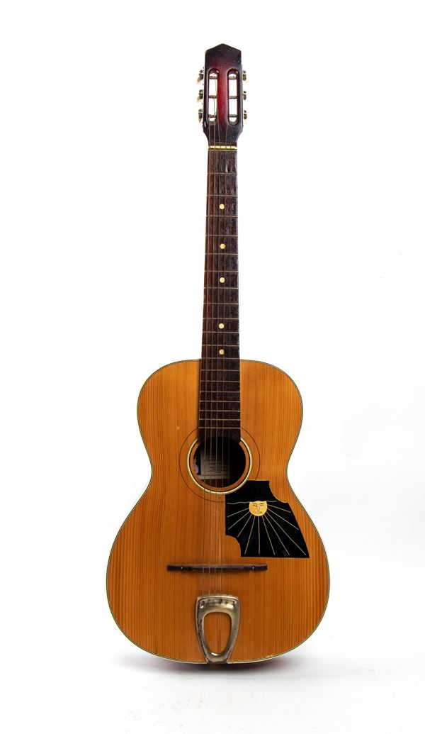 This is one of the guitars owned and used by the very young Lucio Battisti (Poggio Bustone, March 5, 1943 โ Milan, September 9, 1998), a gift from his father. The singer-songwriter also began playing with his first bands.