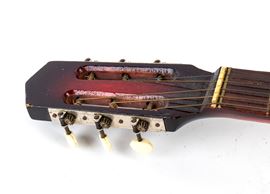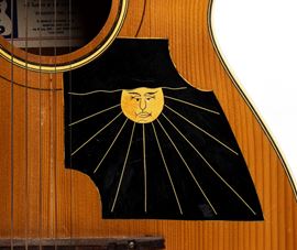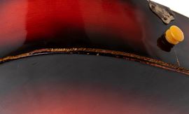 Light-toned maple body, with mahogany for the reddish tone on the back. Dark-wood neck with original fingerboard, headstock, and tuning machines. Pickguard carved with a sunburst. Original bridge. Original metal string tree.