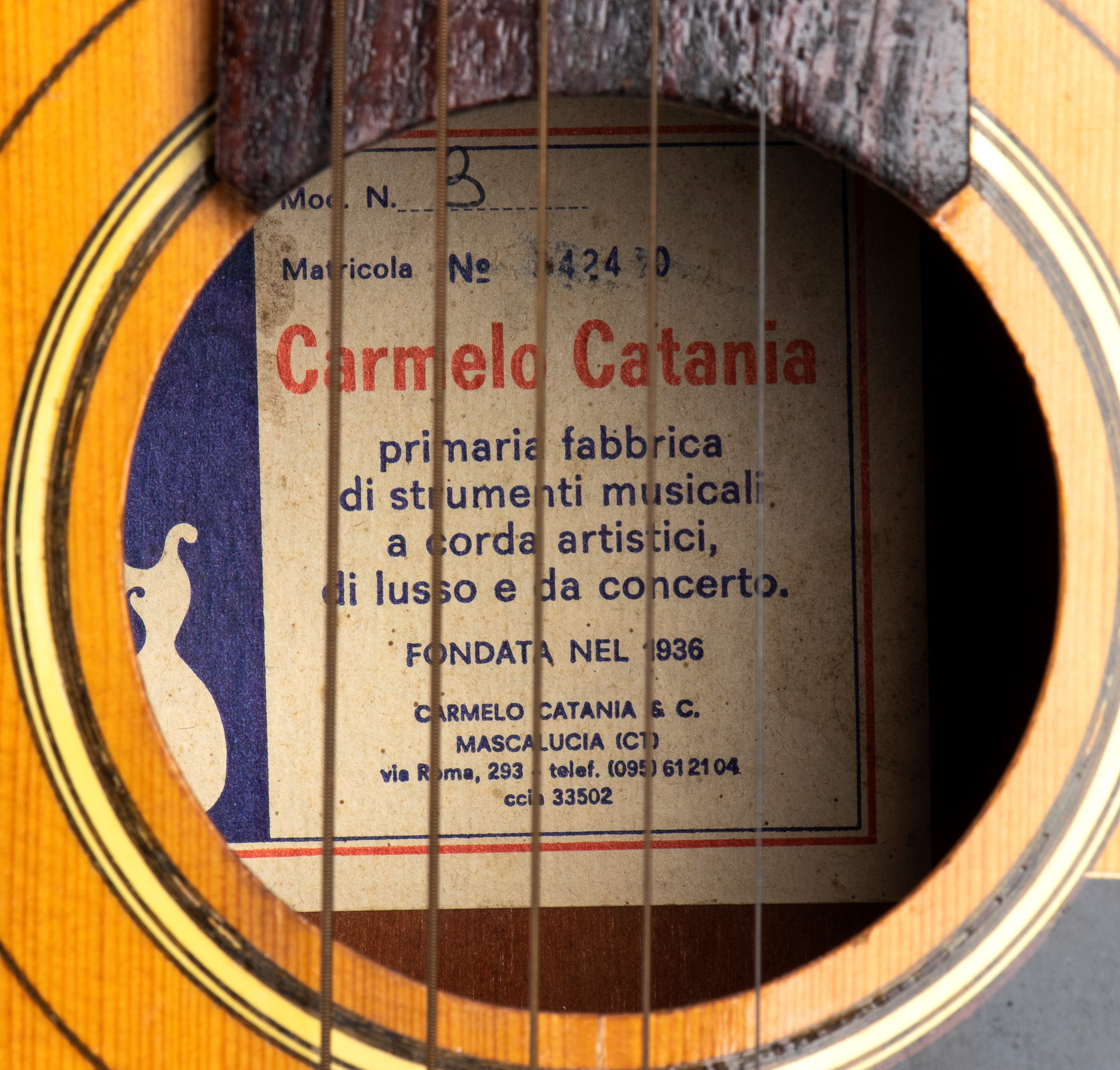 Made by renowned luthier CARMELO CATANIA in his "leading manufacturer of artistic, luxury, and concert stringed musical instruments - Founded in 1908" in Mascalucia (CT).