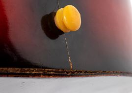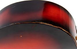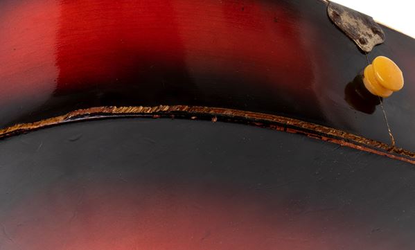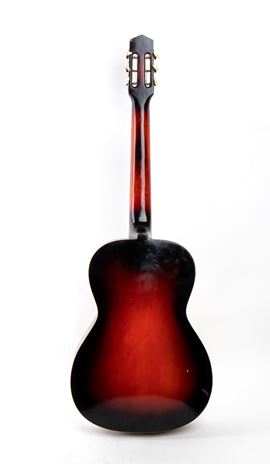 The guitar has a detachment from the lower back, which covers almost the entire semi-curved section. However, this can be easily restored, as there are still some wooden parts and the original dark wood color has not been damaged. The rest of the guitar is in excellent condition.