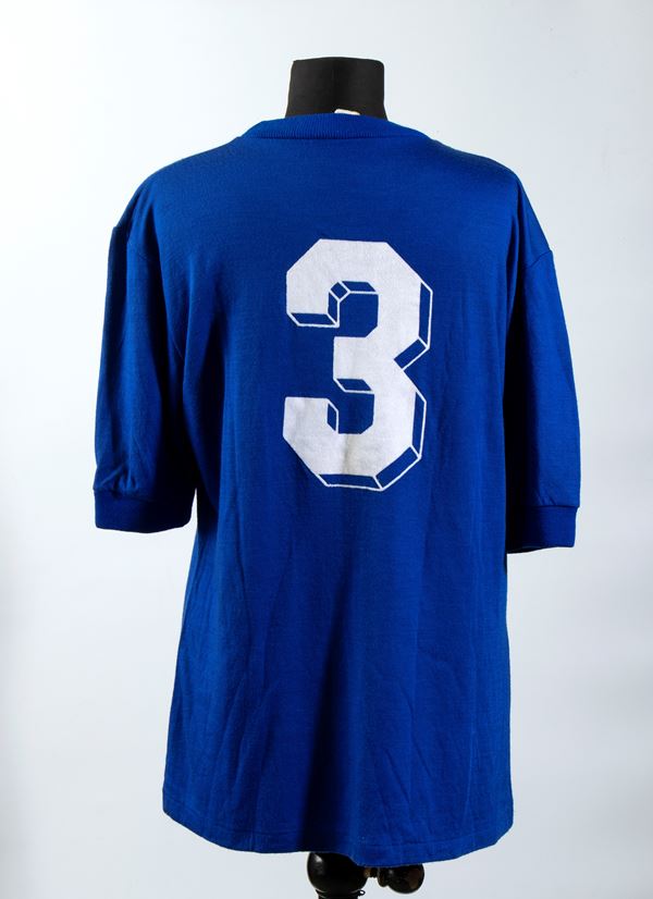 The jersey is presumably from the 1978-1980 period and can be attributed to one of the players between Giuseppe Baresi and Beppe Bergomi who wore the number 3 during that period, as they were unable to obtain precise information from the family due to the obvious lack of a "conferer."