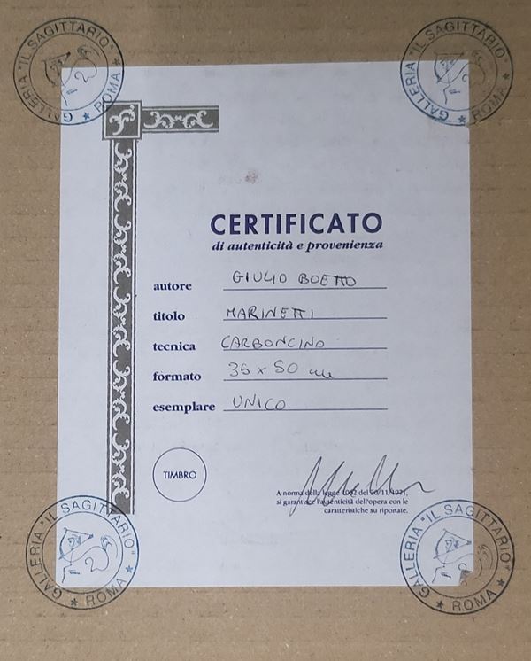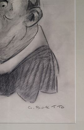Caricature of Filippo Tommaso Marinetti, executed and signed lower right by Giulio Boetto.