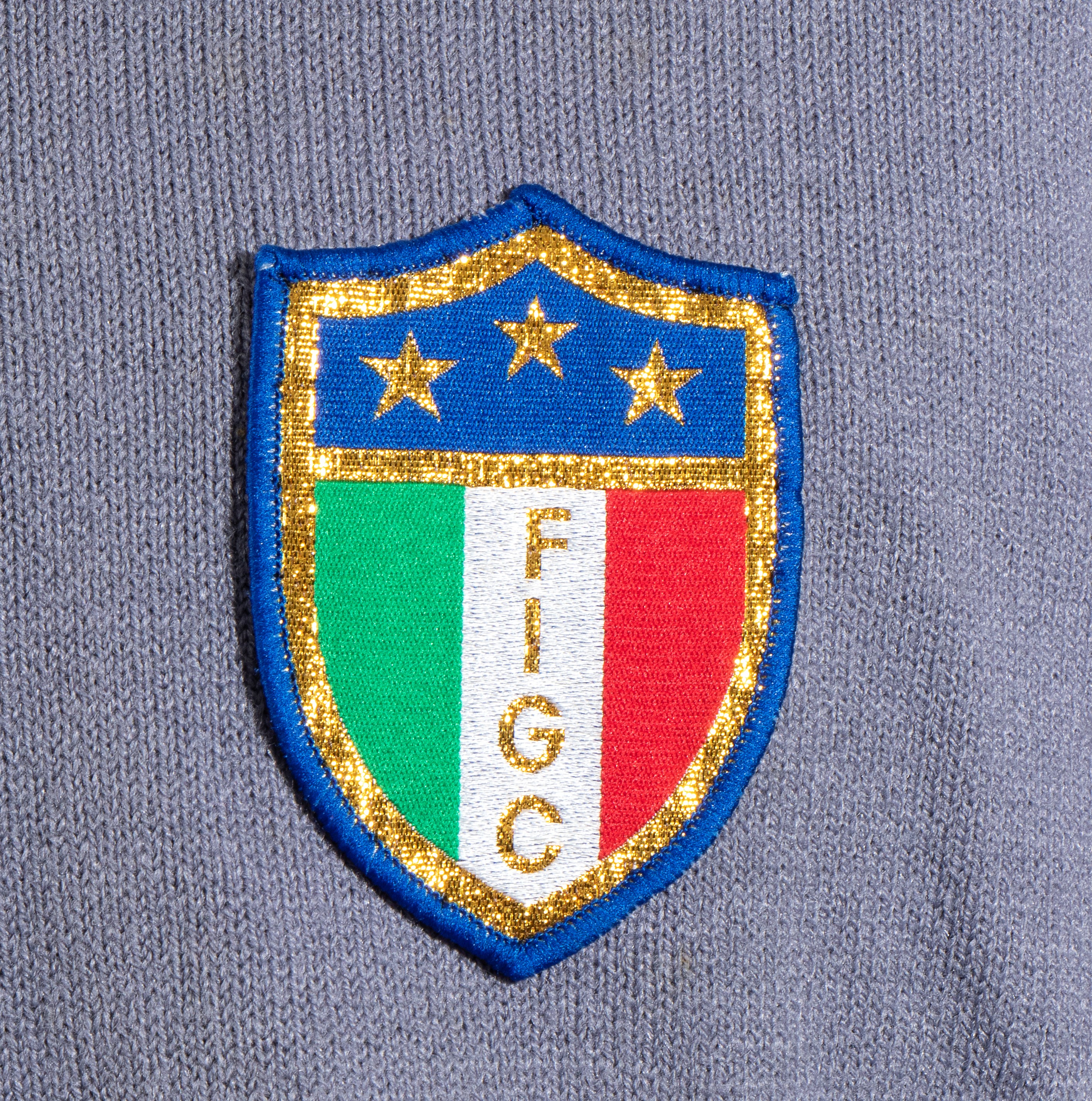 On the front: crest of the Italian Football Federation, three-time world champion ITALY, in synthetic material with reflective gold details.