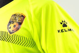 On the front: technical sponsor KELME, sublimation emblem of the soccer event, event sponsor with ideogram text and the G-ENTERTAINMENT title in sublimation.