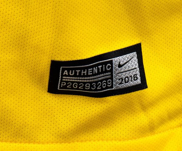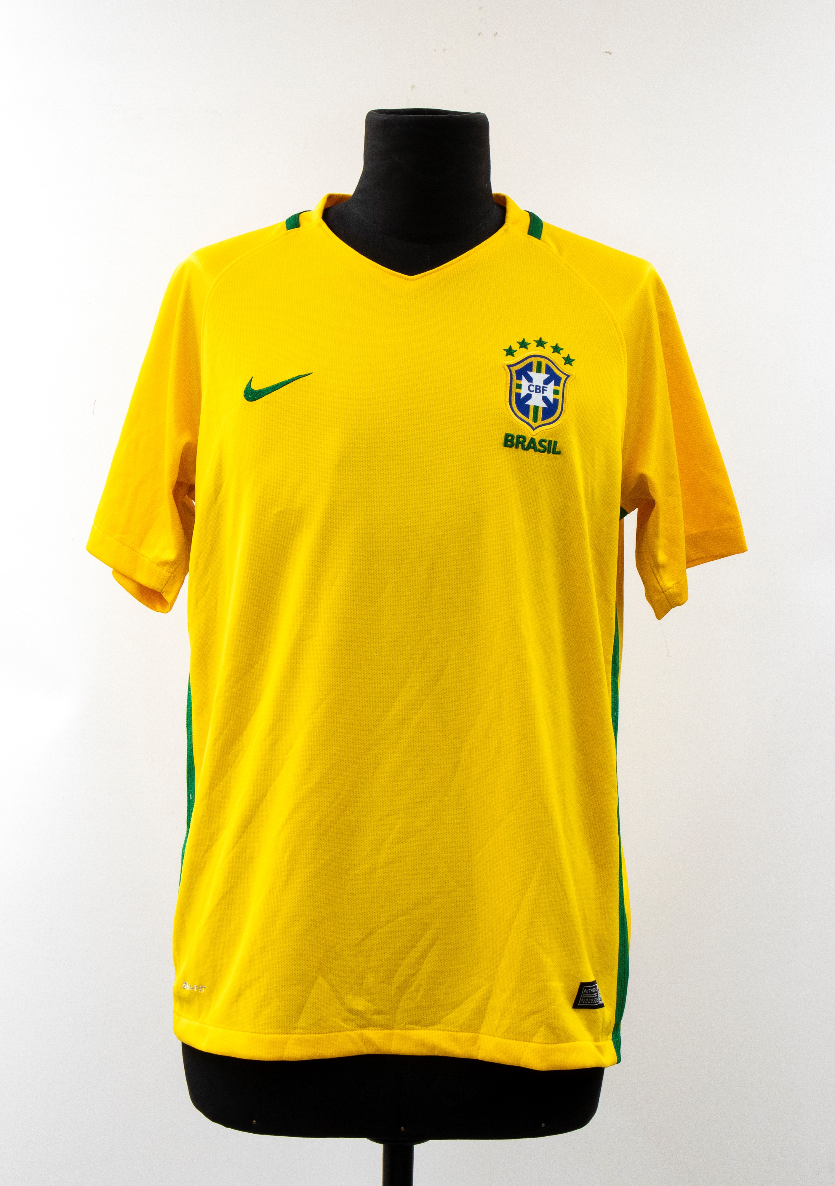 Brazil match jersey, green and gold, Nike Dri-Fit Authentic 2016, short sleeves.