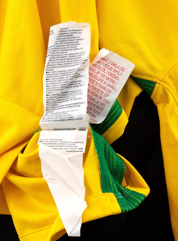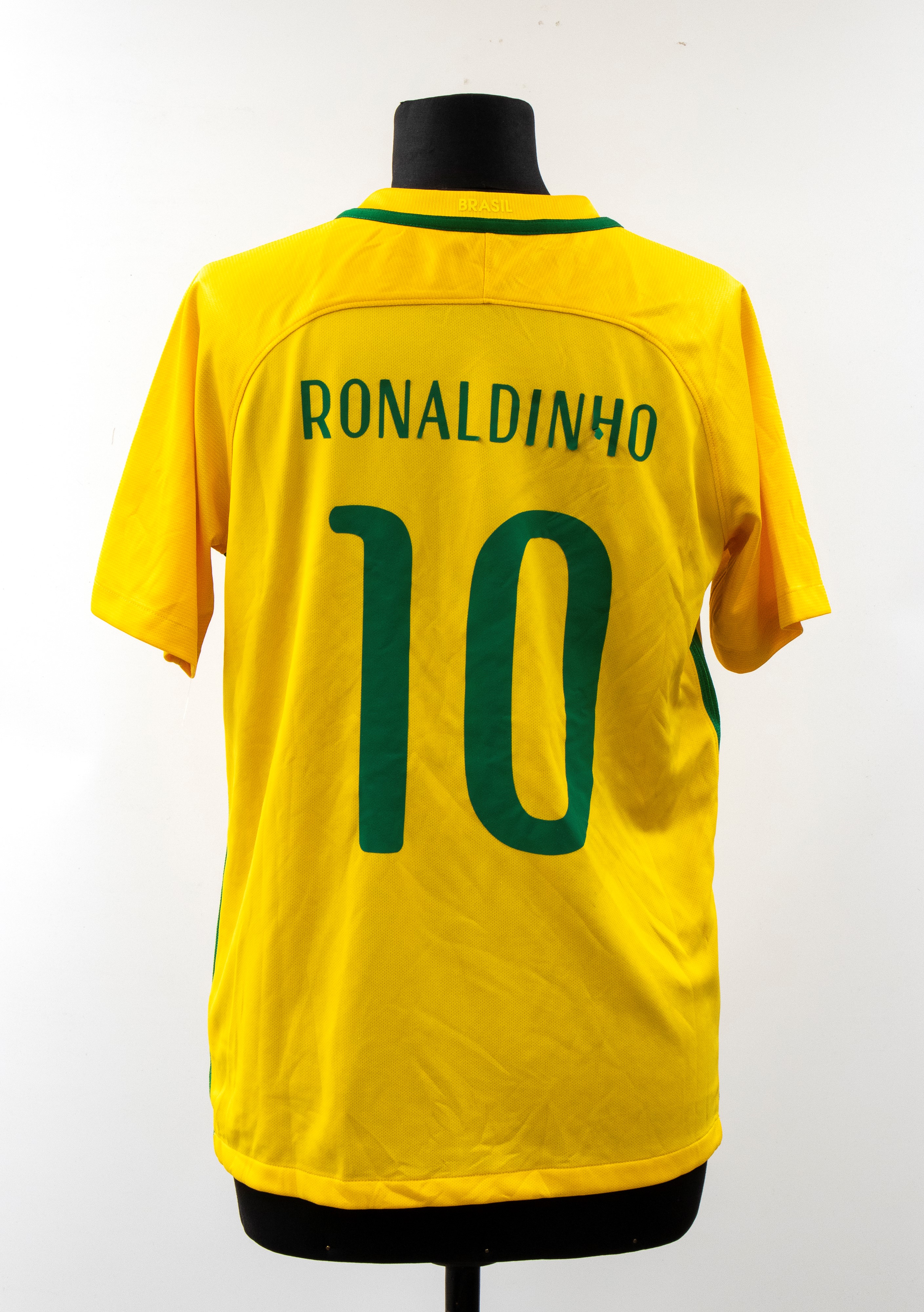 On the back: sublimated/heat-printed name RONALDINHO (letters are missing), sublimated/heat-printed number 10.