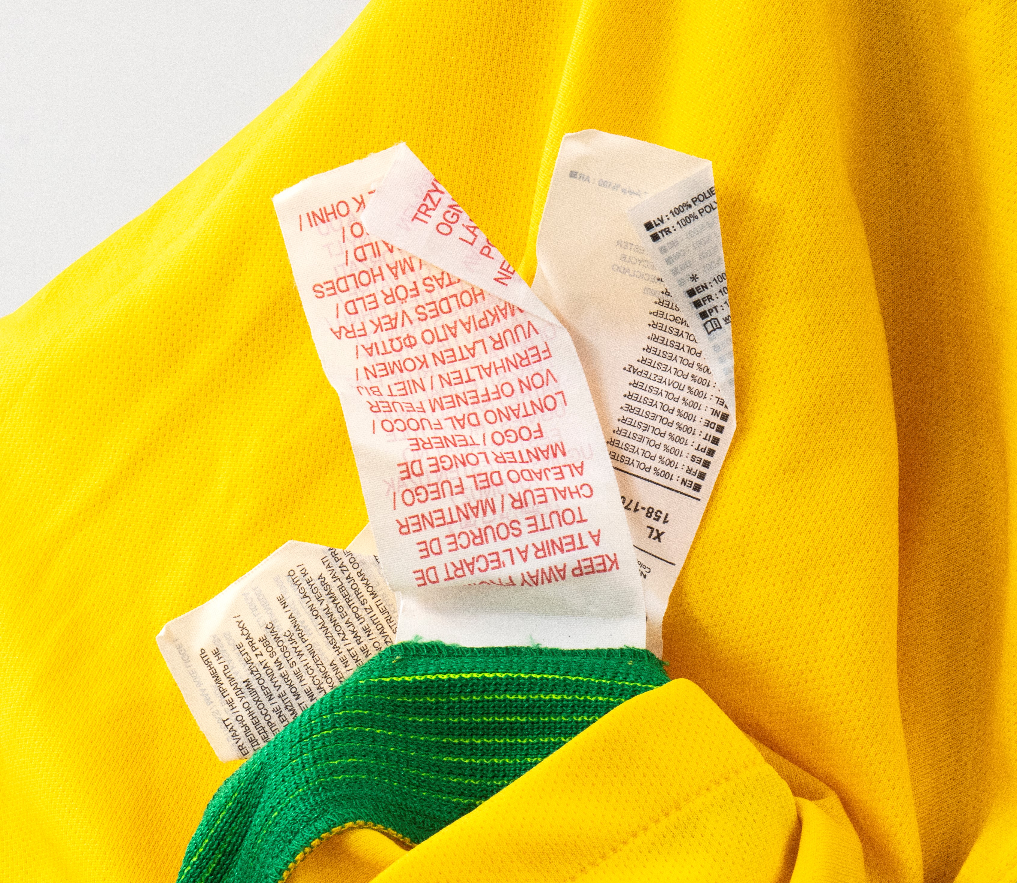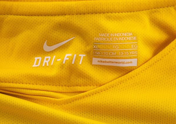 Inner NIKE labels with manufacturing information, size XL, 100% polyester.