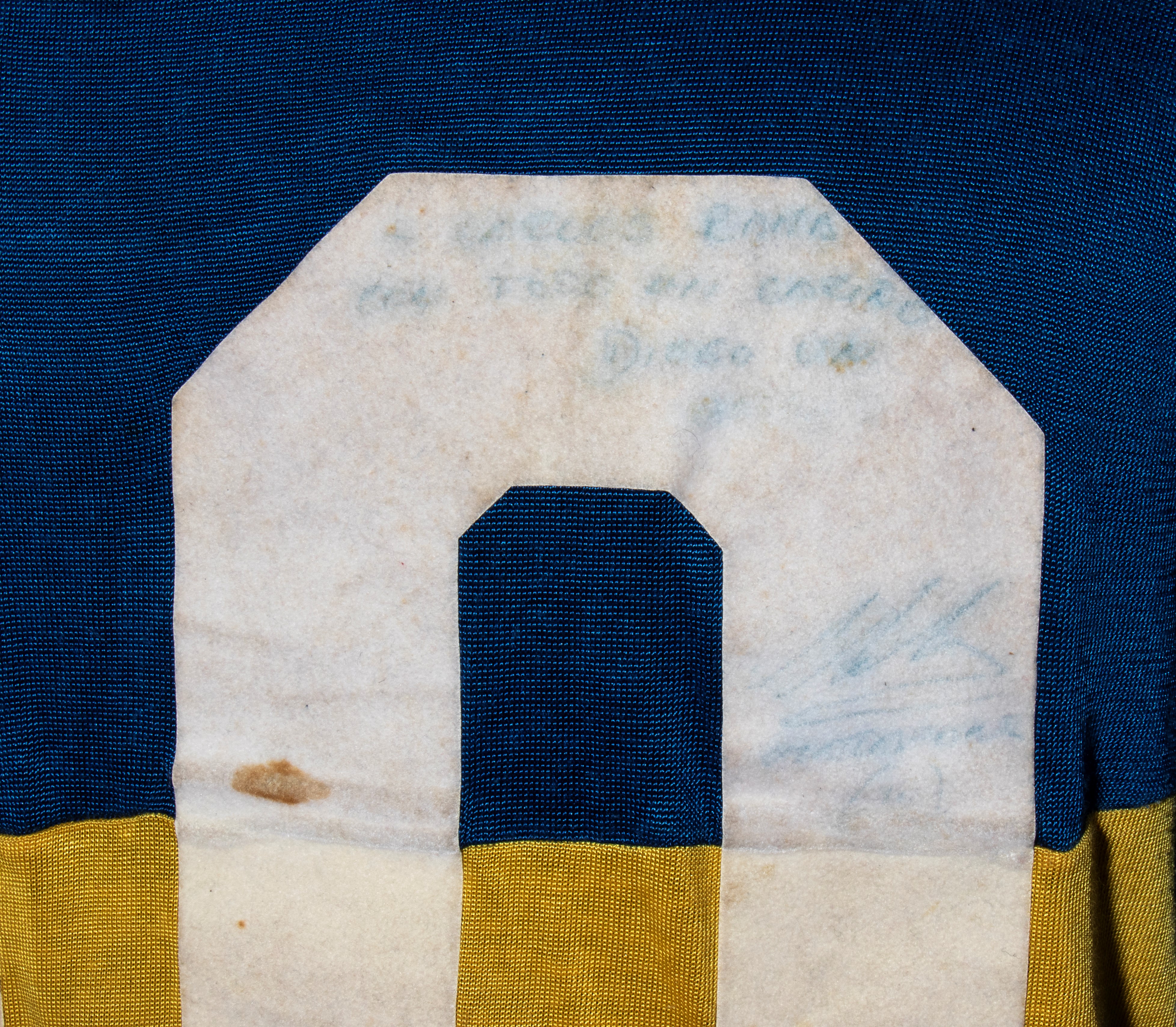 Jersey worn by Diego Armando Maradona in the Boca Juniors - San Lorenzo match on June 21, 1981, which ended 4-0 in favor of Boca. Maradona scored the fourth goal of the match, a free kick.
