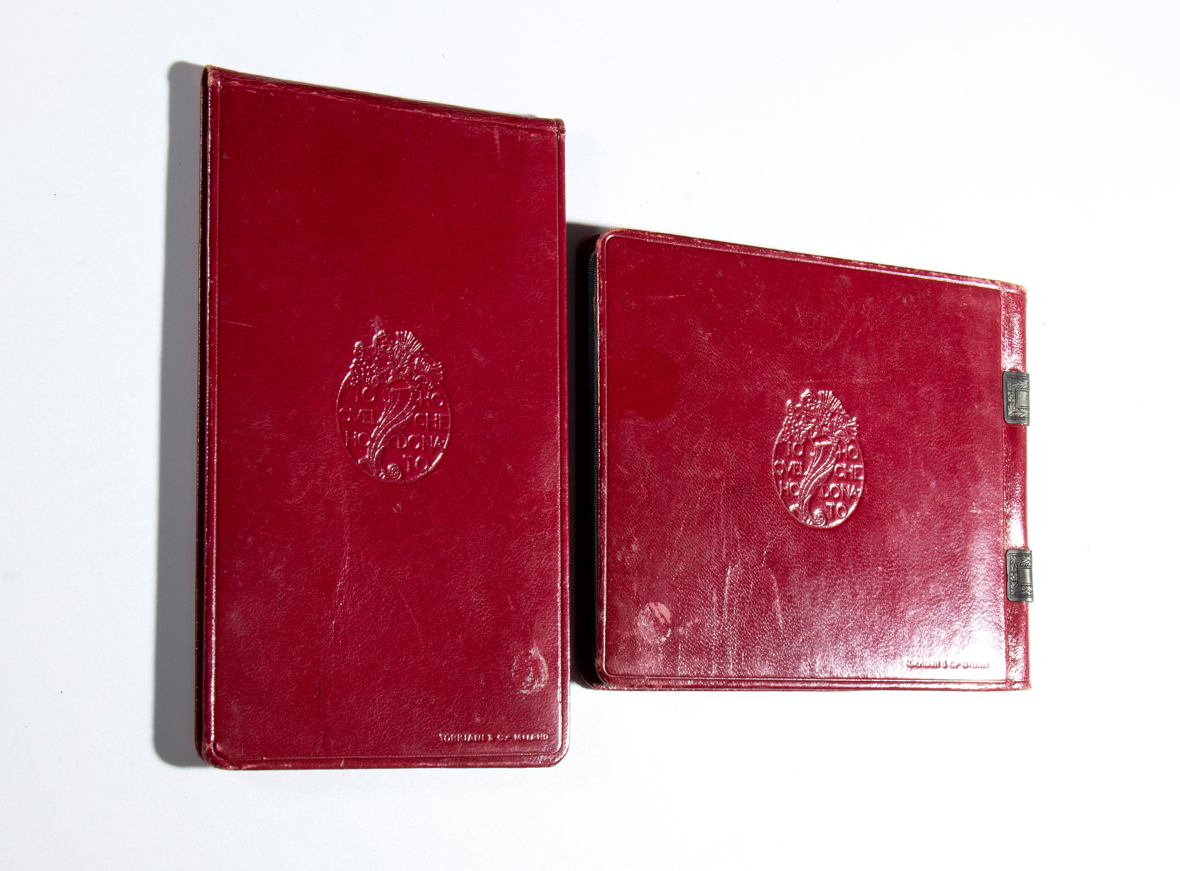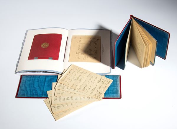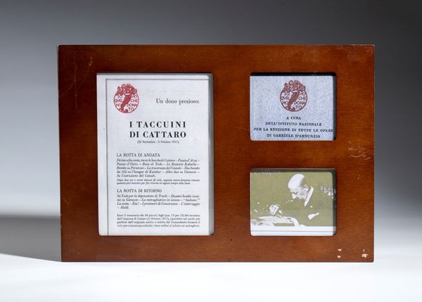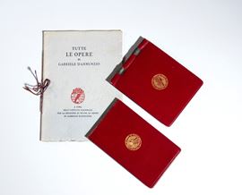 In perfect condition, the lot includes the two notebooks in perfect condition and a booklet ALL THE WORKS of Gabriele d'Annunzio, illustrating the work (collected in a modern wooden box)