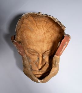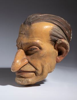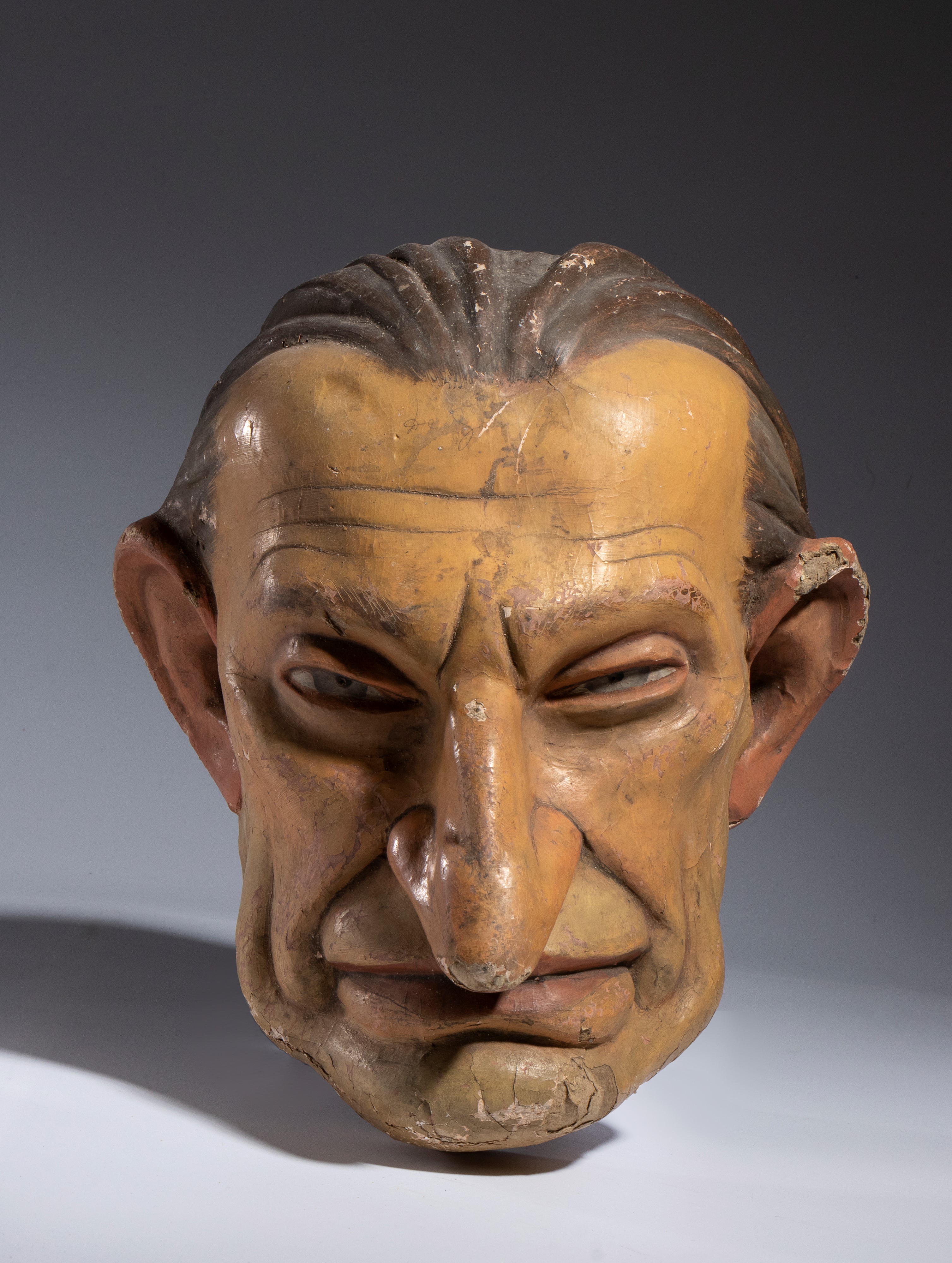 Hand-painted papier-mΓ’chΓ© caricature of Alcide De Gasperi ( Pieve Tesino, 3 aprile 1881 β Borgo Valsugana, 19 agosto 1954). Original, signed inside: A. NICOLA - 1948