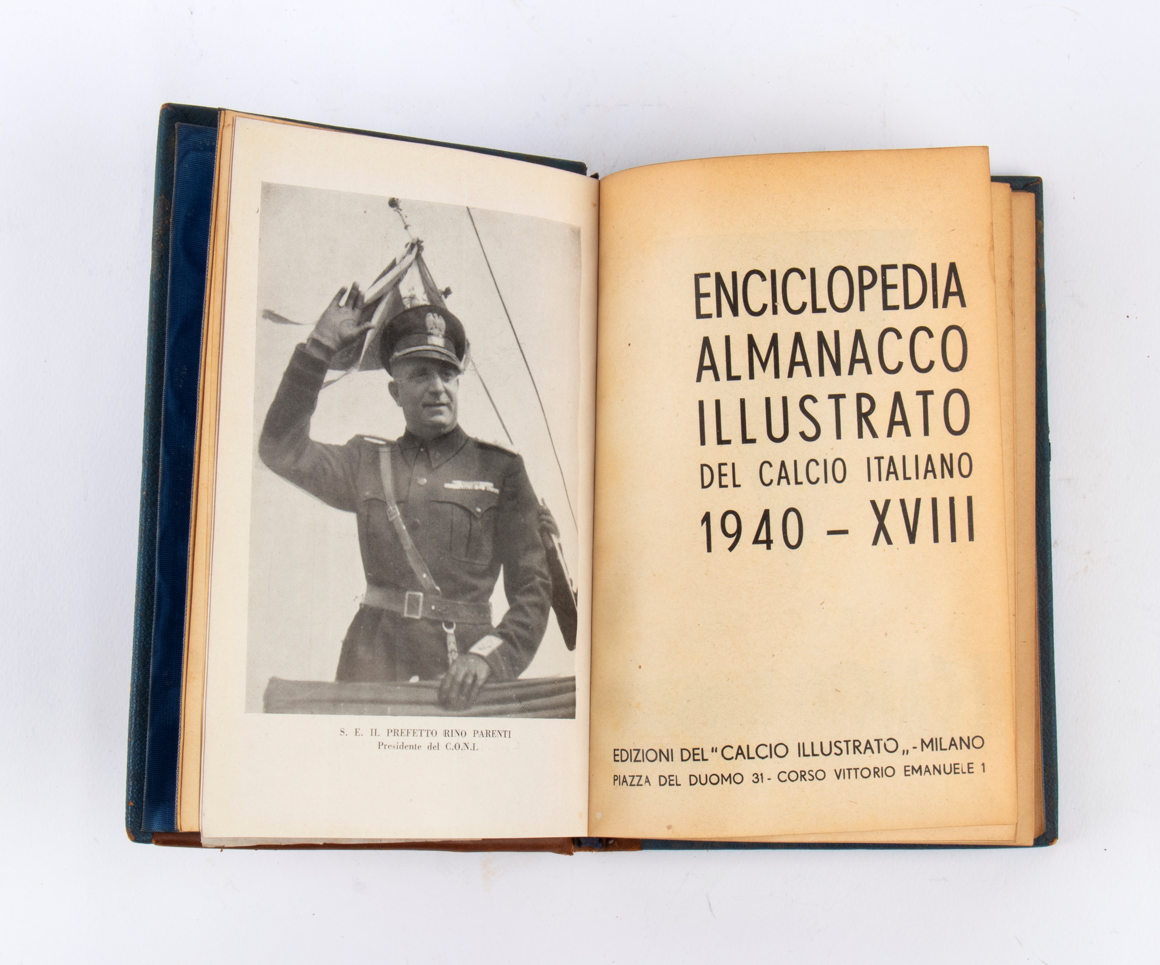 Probably a unique copy, a special edition of the Illustrated Almanac of Italian Football Encyclopedia, published in 1940, Year XVII of the Fascist era, evidently intended for a prominent figure of the era, such as His Majesty King Victor Emmanuel III, Duce Benito Mussolini, or CONI President Prefect Rino Parenti.
