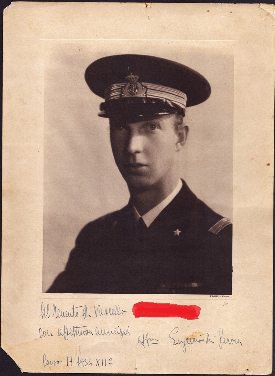 Eugenio Alfonso Carlo Maria Giuseppe of Savoy, 5th Duke of Genoa and Duke of Ancona (Turin, March 13, 1906 โ€“ Sรฃo Paulo, Brazil, August 12, 1996), black and white photograph on cardboard, with dedication and autograph signature in blue ink, dated 1934, the 12th year of the Fascist era.