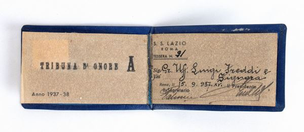 Card issued by SS LAZIO for the 1937-38 season in the name of Luigi Freddi (and lady) the creator of the Cinecittà film studios (Rome) - Valid for access to the stadium in the TRIBUNA D'ONOR A, with light blue imitation leather cover , shield coat of arms of the SS LAZIO printed, FIGC stamp for the year 1938, signed by the president (Erberto Vaselli?) - Luigi Freddi (Milan, 12 June 1895 – Sabaudia, 17 March 1977) was an Italian journalist and politician, well-known above all for having been first deputy secretary of the Italian Fasci abroad, and subsequently one of the highest leaders of Italian cinematographic policy in the second half of the 1930s and at the beginning of the 1940s. He was the creator of Cinecittà.