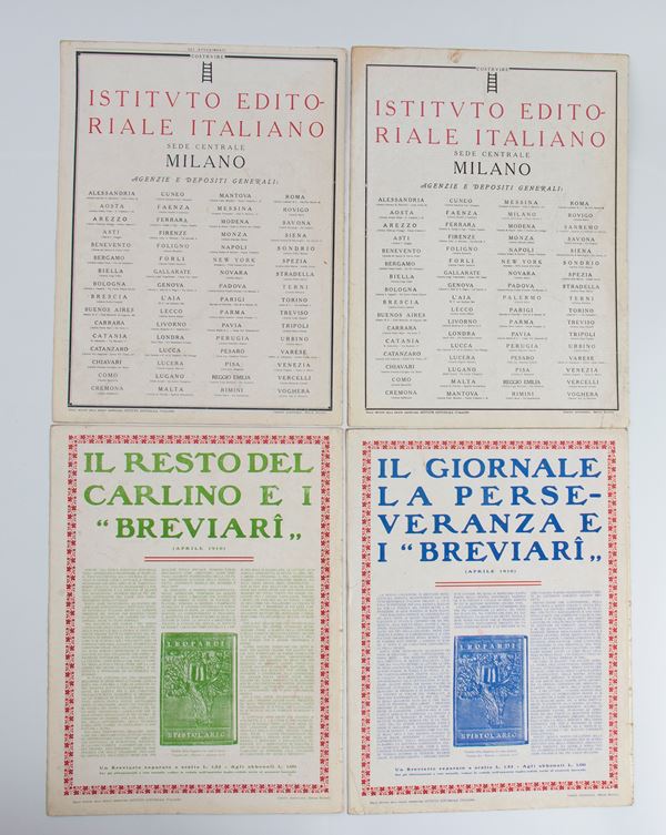 Lot of four magazines from 1916 titled GLI AVVENIMENTI, covers designed by Giacomo Balla, Sironi, and Duilio Cambellotti.