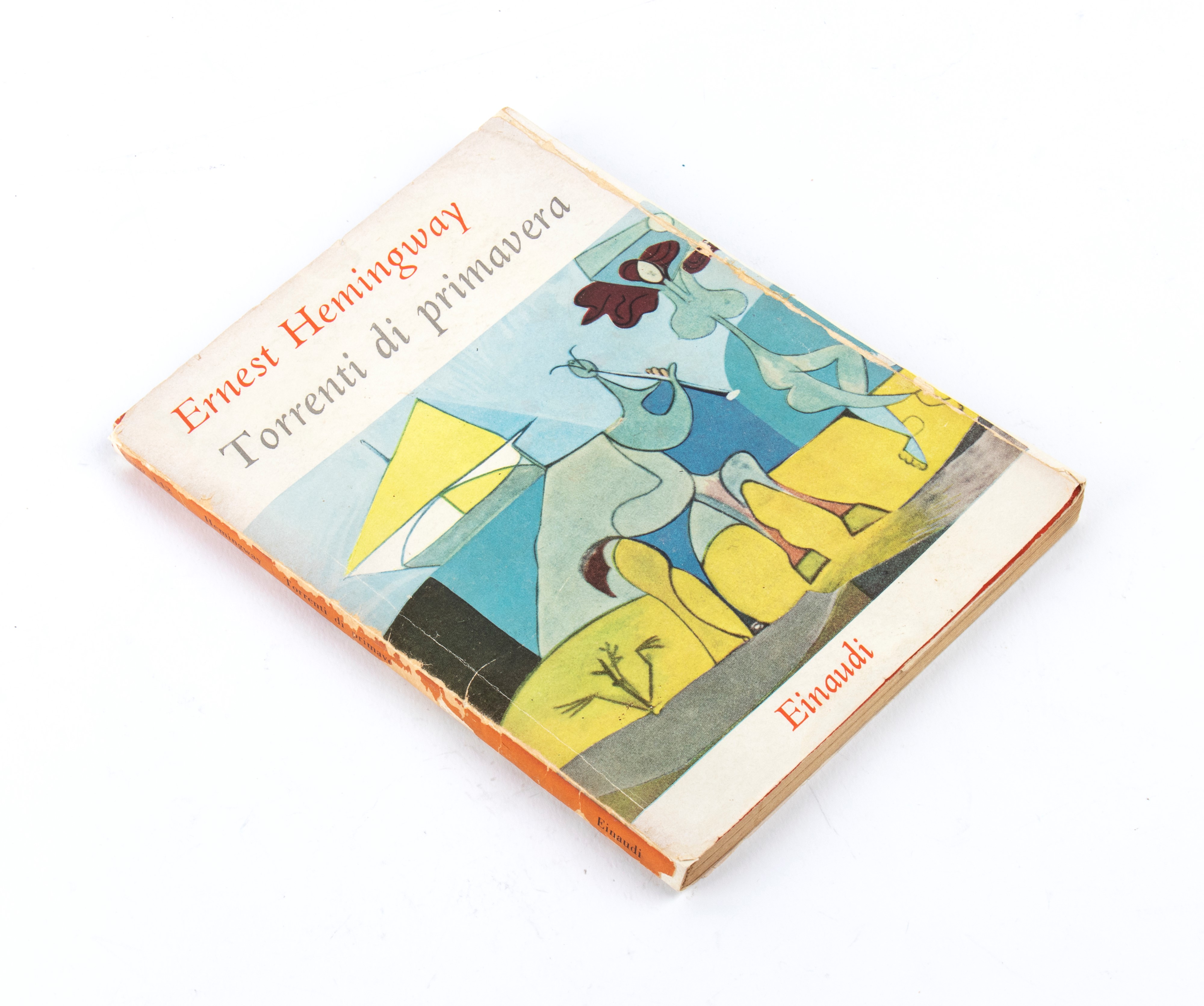 Lot consisting of a volume entitled "Torrenti di Primavera" with a dedication and handwritten signature by Ernest Hemingway
