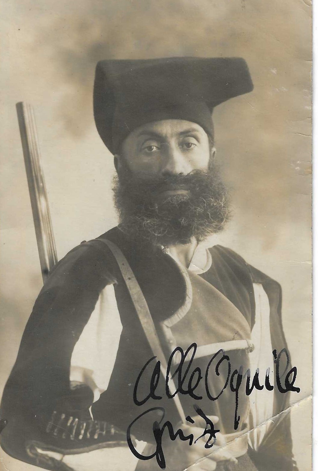 Original autographed black and white photo of Guido Keller in Sardinian costume (?) with dedication "ALLE AQUILE - GUIDO"