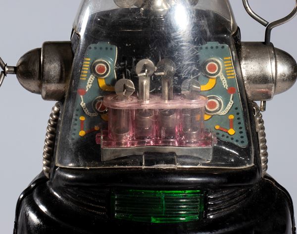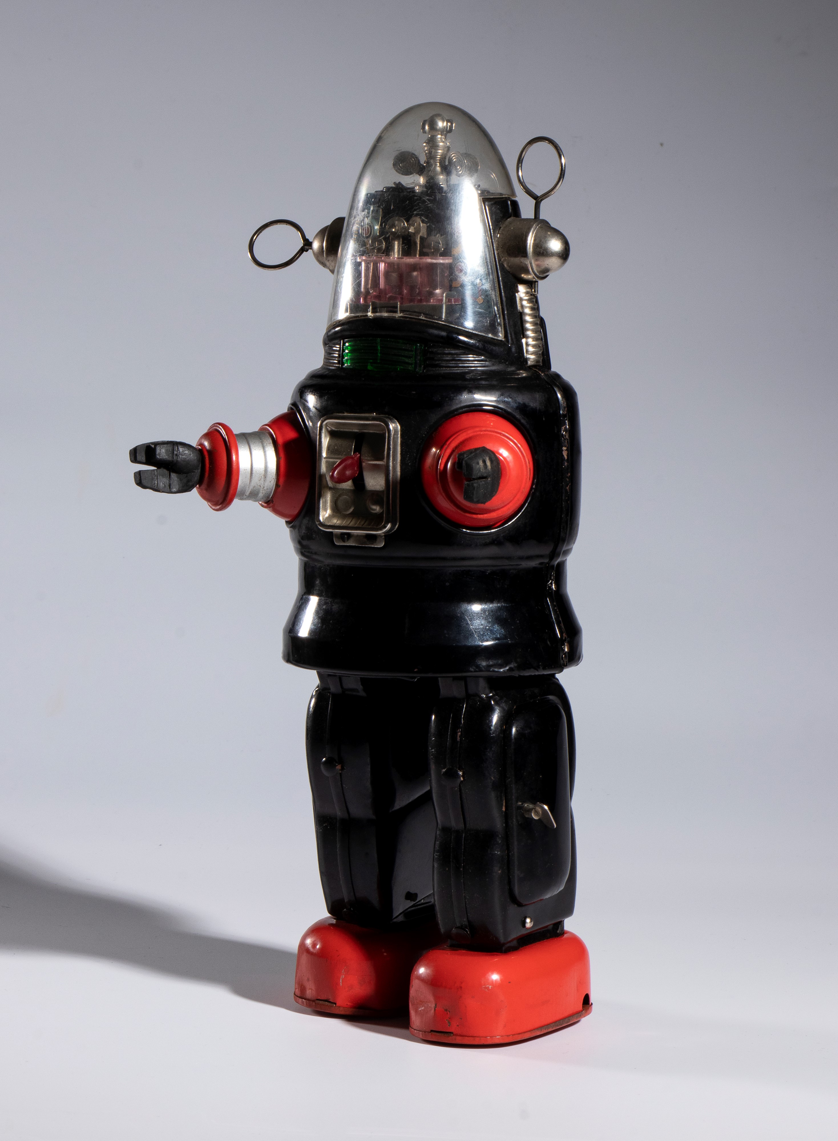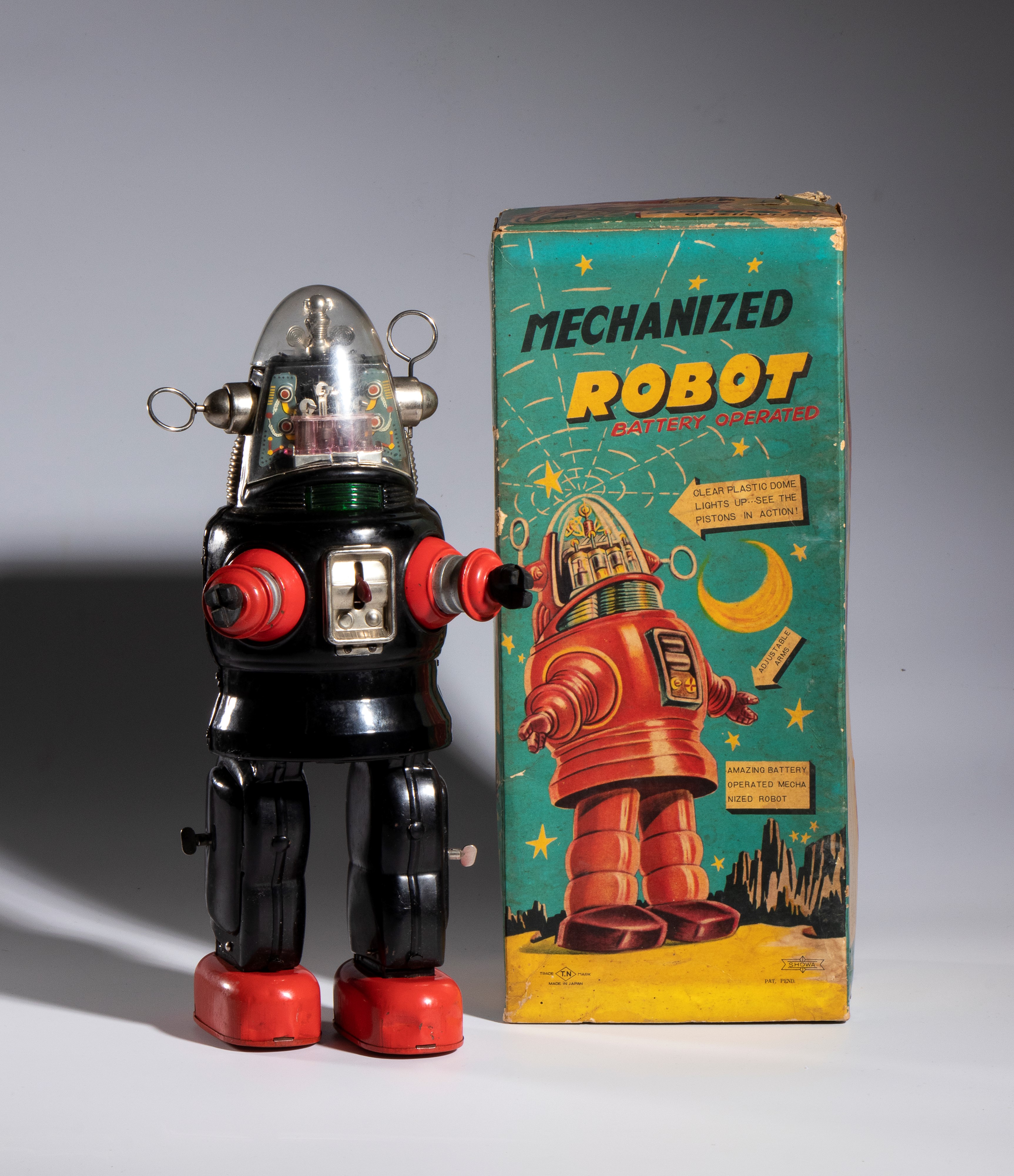 Called MECHANIZED ROBOT, better known as Robby the Robot, released concurrently with the famous 1956 film THE FORBIDDEN PLANET starring Leslie Nielsen. Due to a lack of copyright, the Japanese company was forced to change the marketing name.
