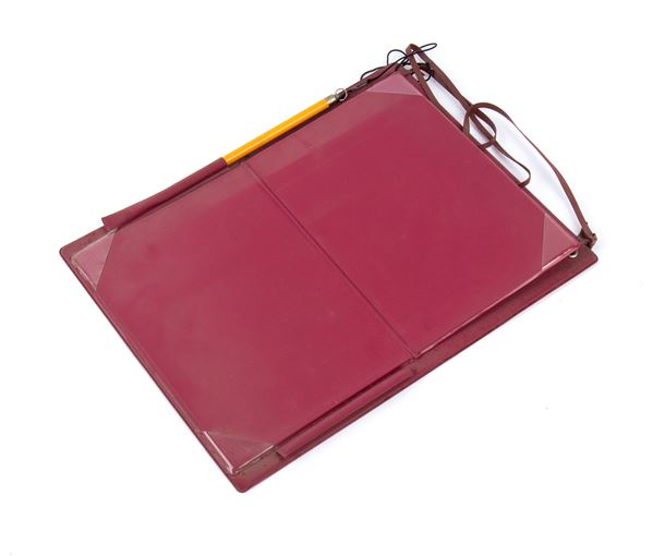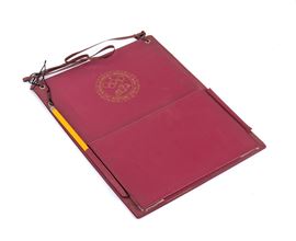 - leatherette folder for the official referees of the competitions, to hold sheets of paper for taking notes during the competitions, recording times, and communications, still with a period pencil, unused