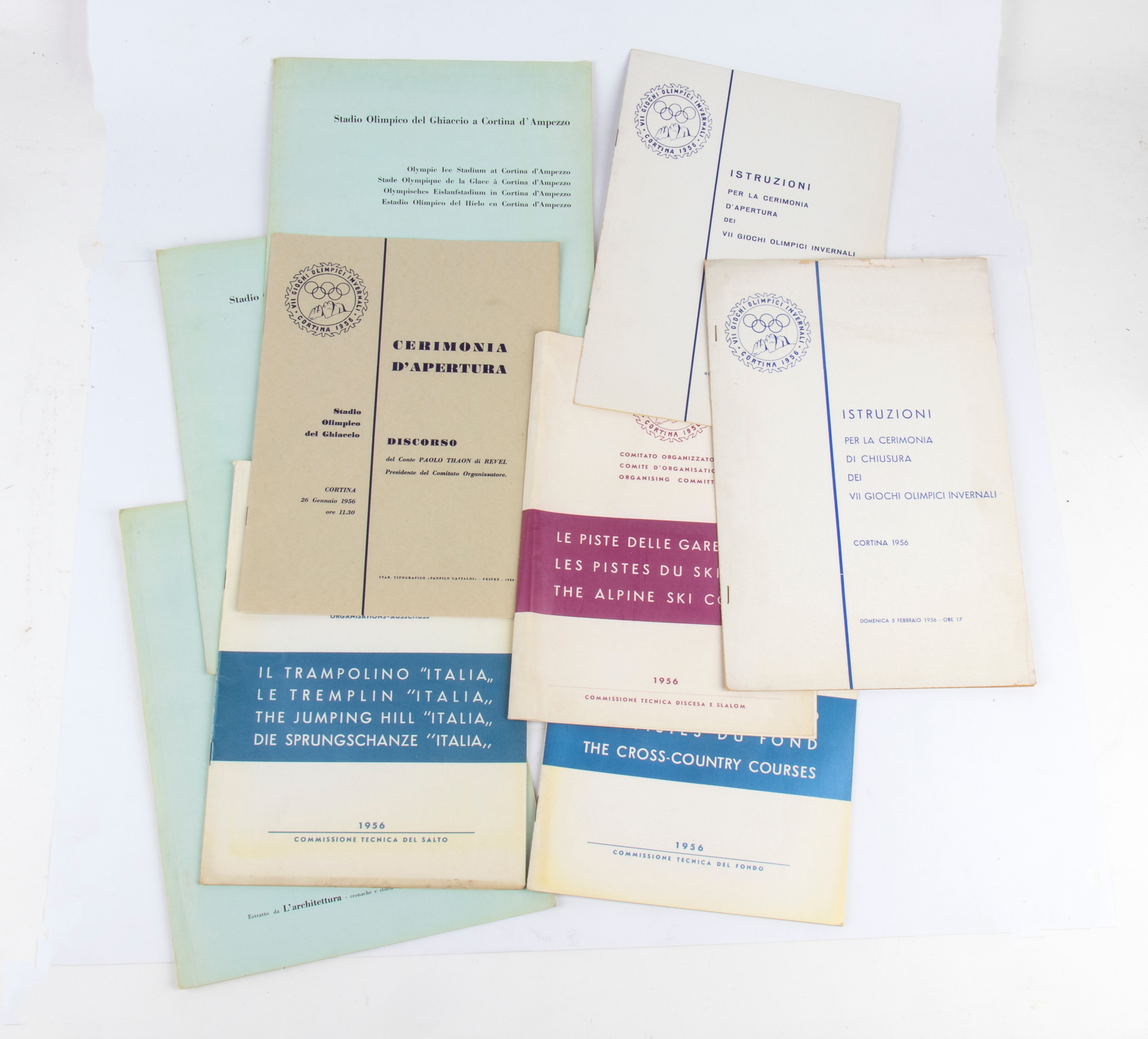 - 9 booklets on the Instructions for the Opening and Closing Ceremonies of the Olympic Games, the Competition Tracks, the ITALIA Ski Jump, and the Olympic Ice Stadium