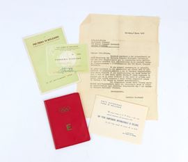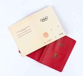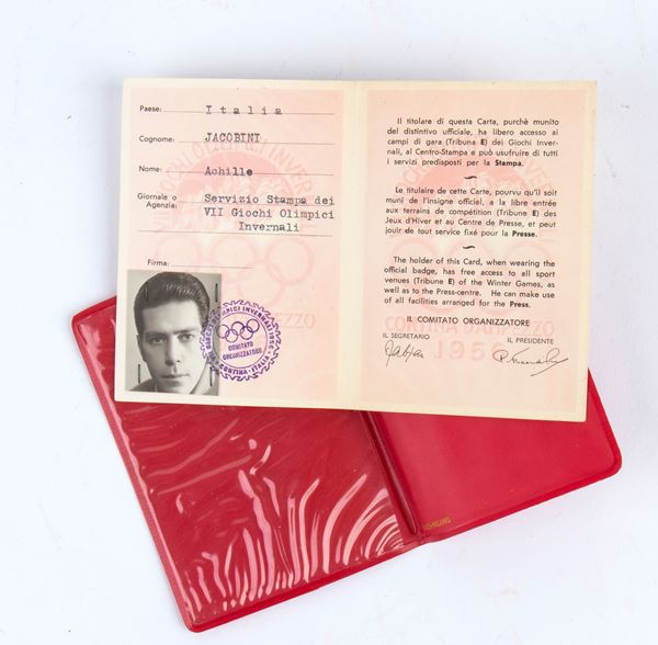 - personal membership card for the member of the Cortina 1956 Olympics Press Service Cortina, issued by the Organizing Committee, complete with leather case embossed with the Olympic logo and the letter "E" in gold-plated lettering