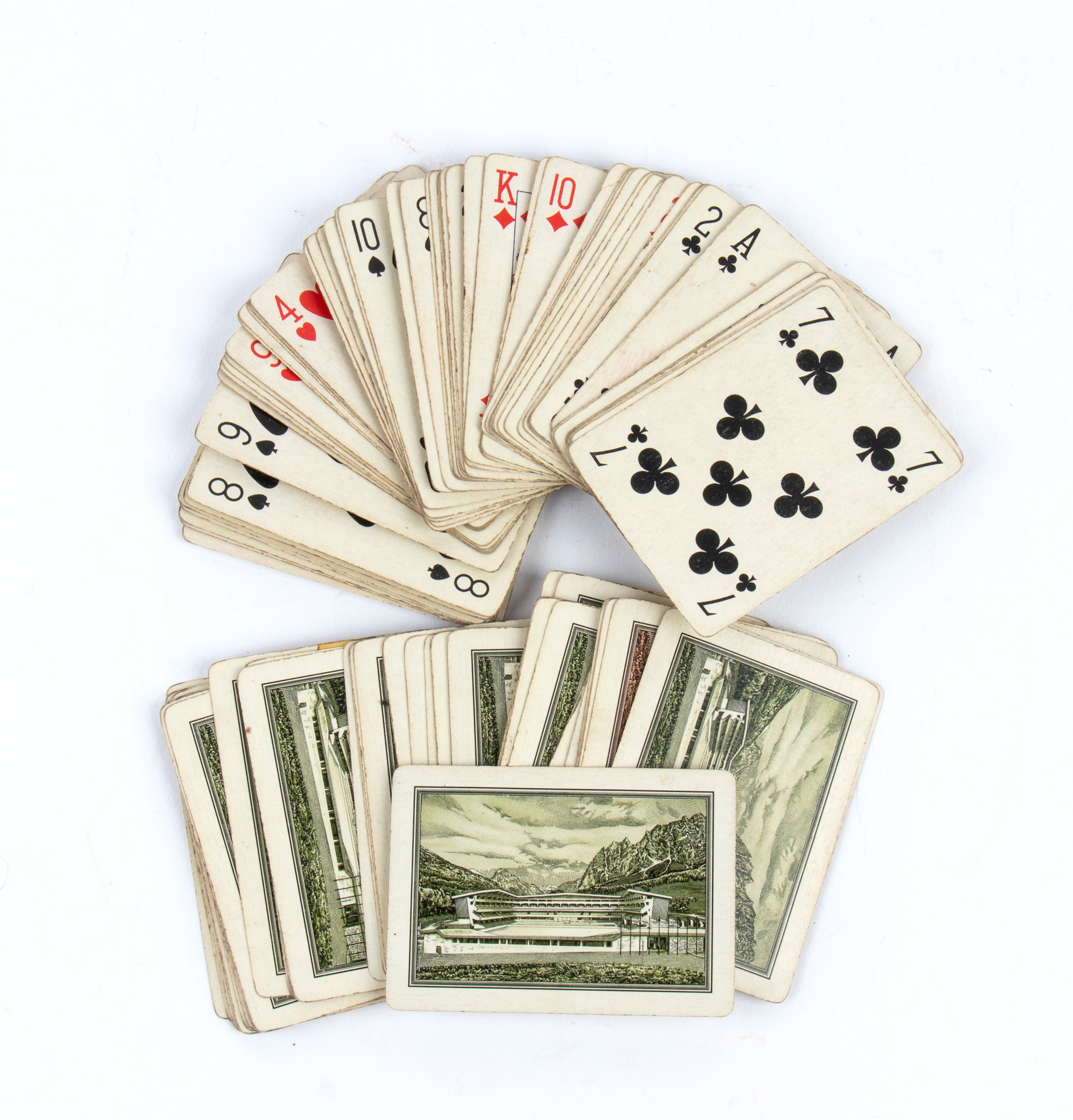- Two decks of poker cards, red and black, with the backs featuring the Cortina ice stadium print