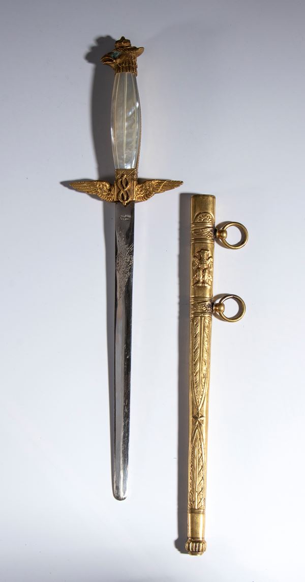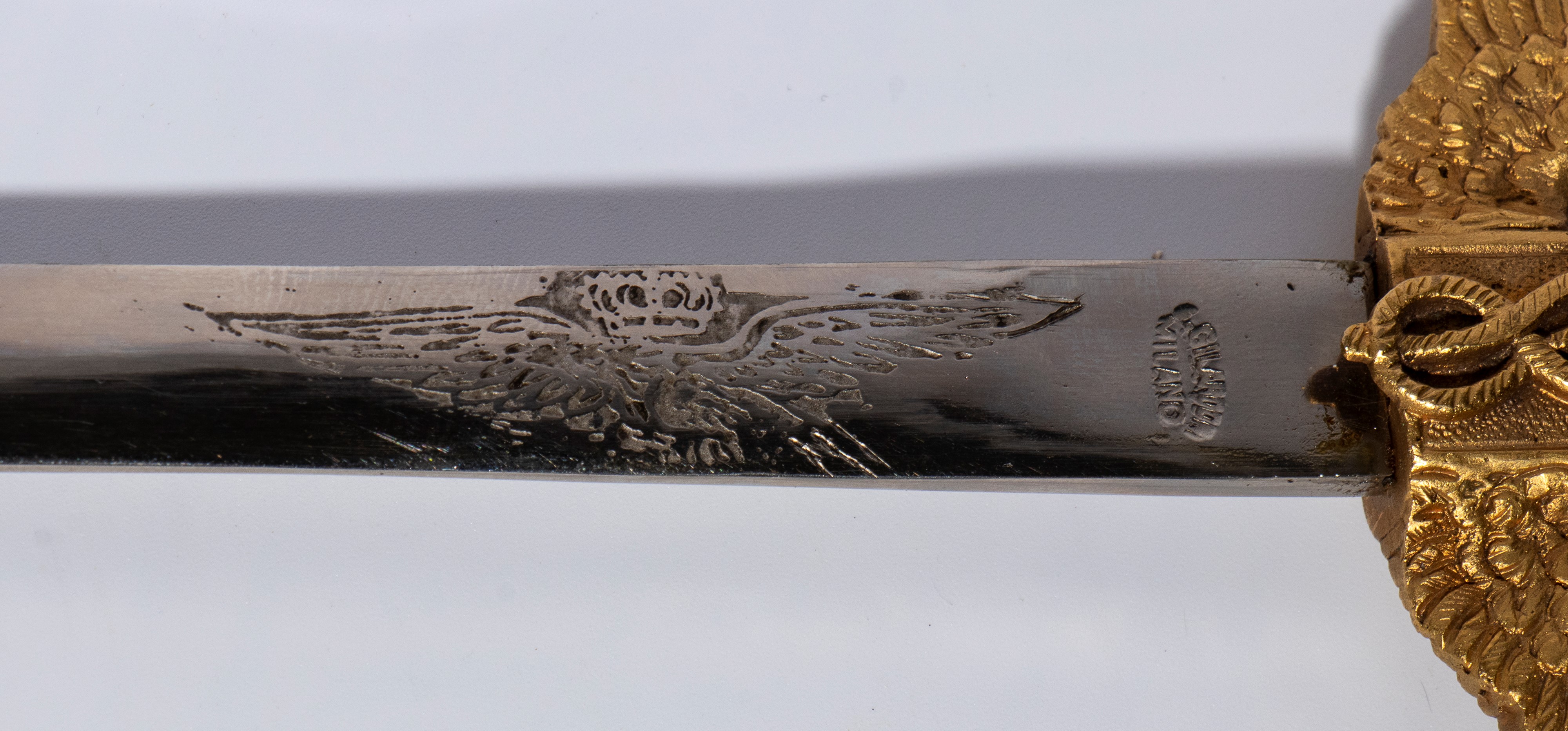 Marked GILARDONI - MILANO, with a crowned eagle with open wings engraved on one side of the blade, a crowned eagle's head grip, and a guard in the shape of open wings with a Savoy knot in the center. The blade lacks the cutting edge and cutting edge, as required by regulations, as it is not a bladed weapon but merely a decorative accessory to the uniform.