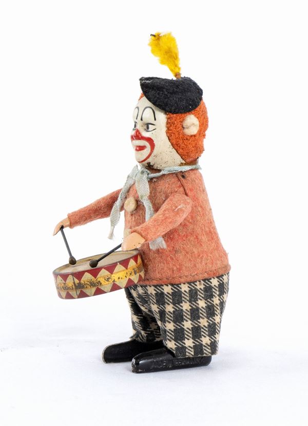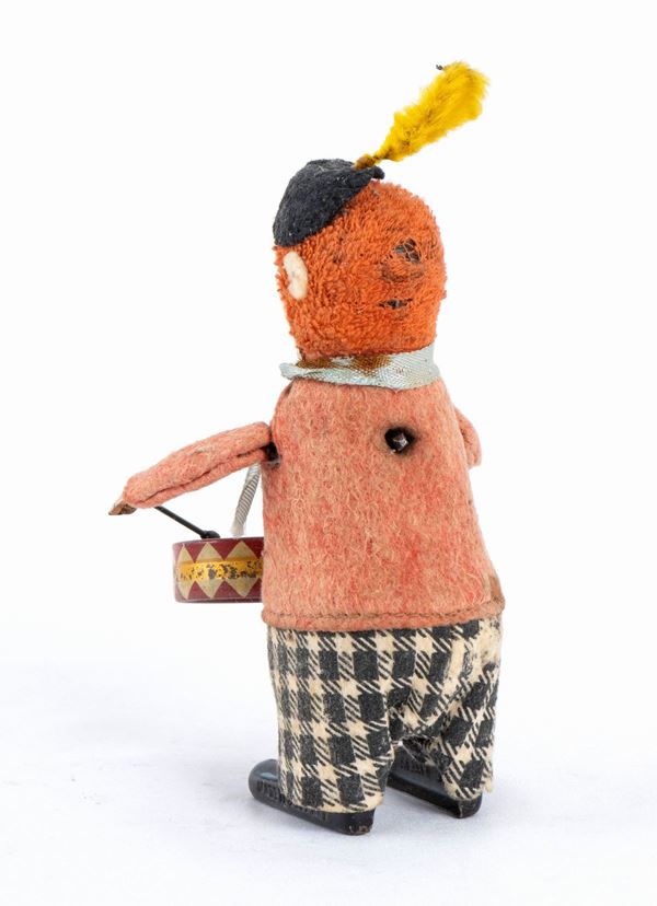 Character from SCHUCO, Germany, clown drummer, wind up mechanism. 1930s. Marked on the feet