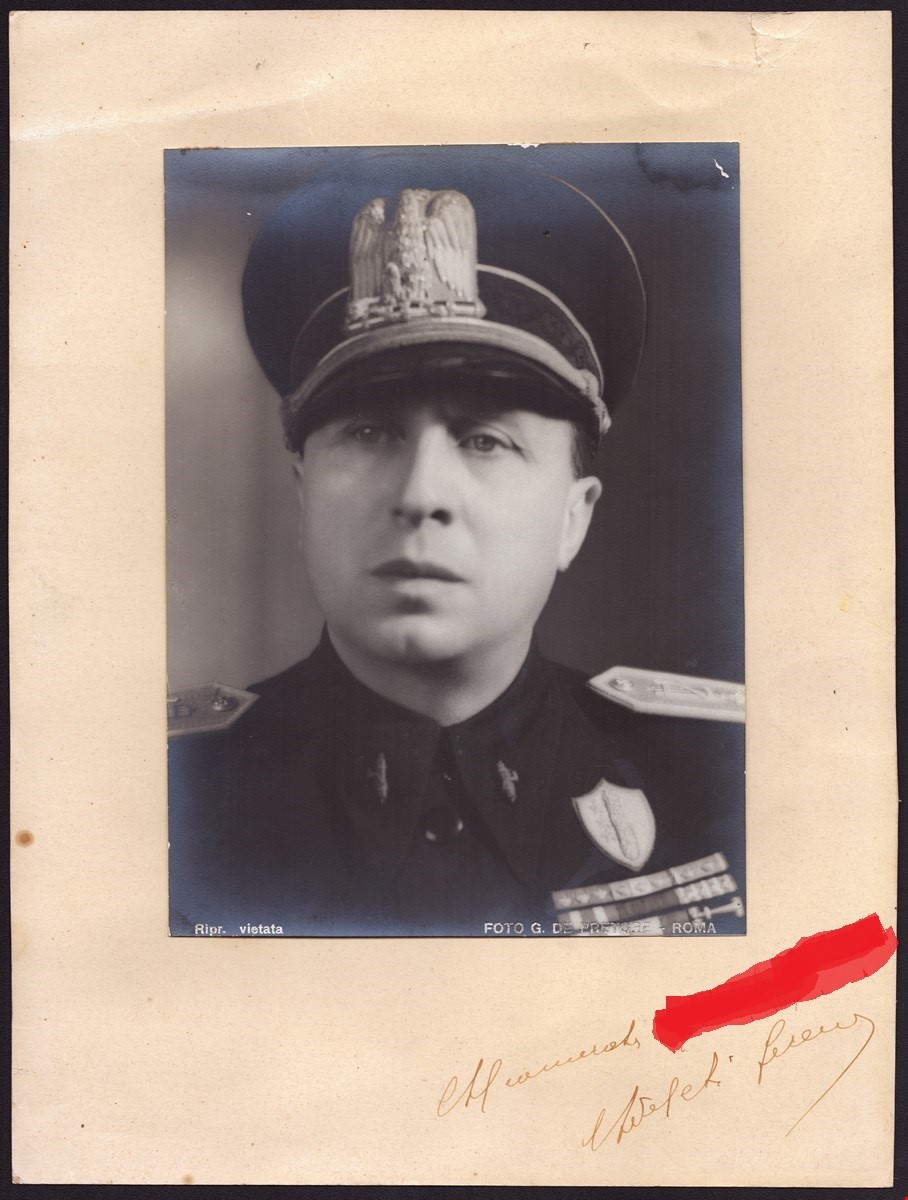 Black and white photograph of Adelchi Serena (L'Aquila, December 27, 1895 โ Rome, January 29, 1970) with dedication and autograph signature in sepia ink (name only digitally hidden for privacy)
