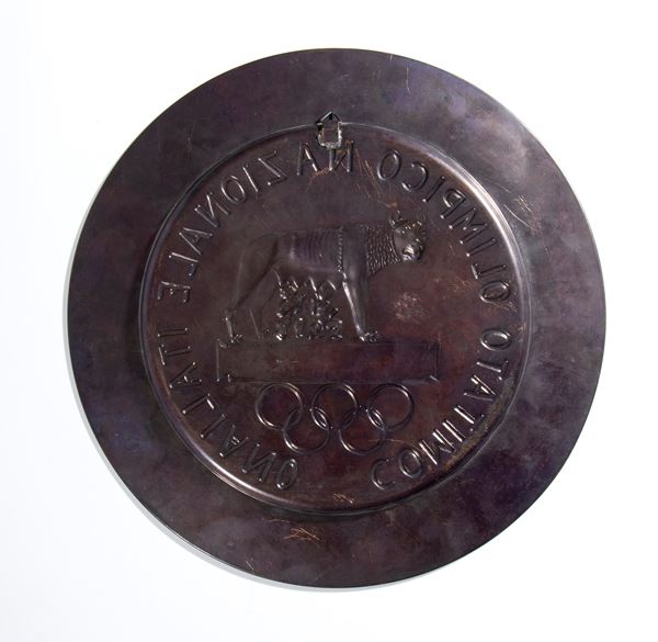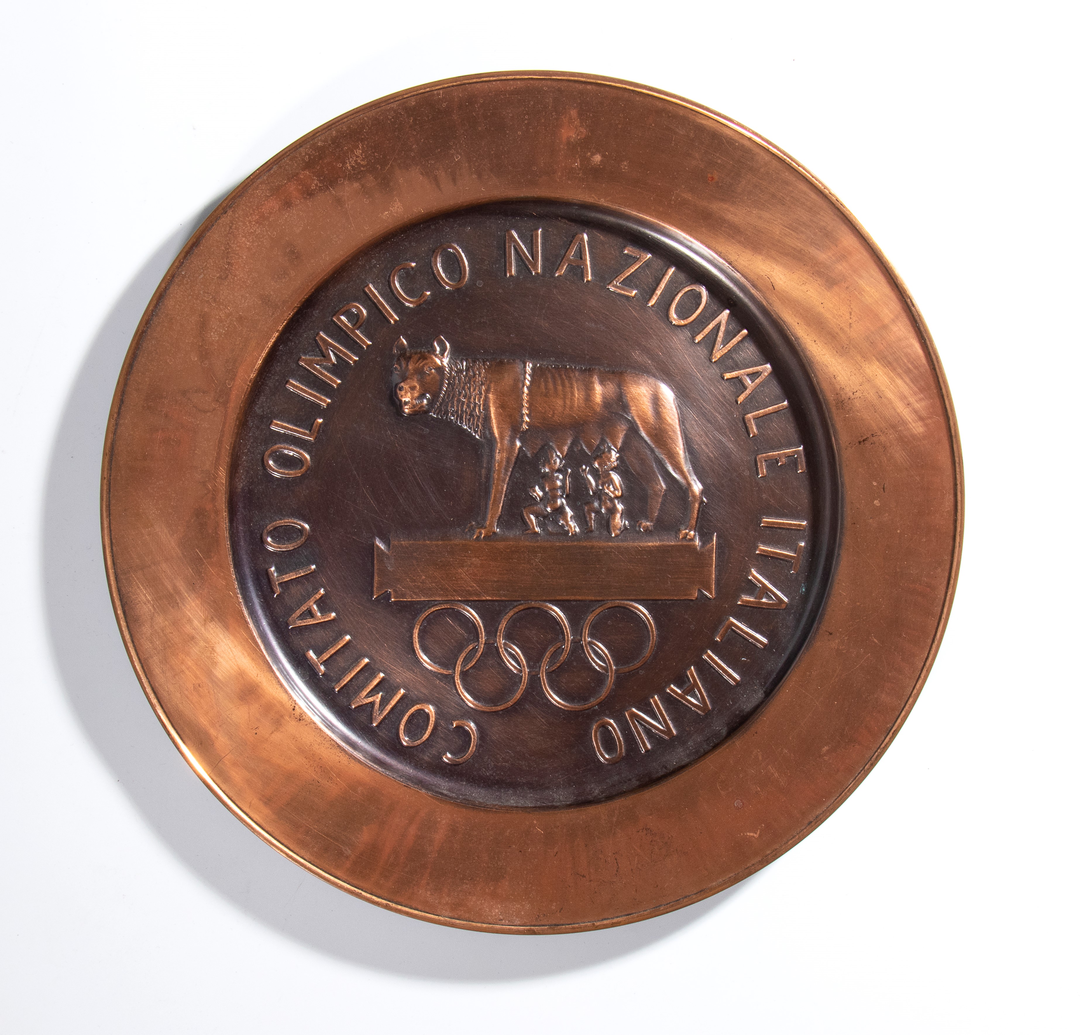 Commemorative plate of the 1960 Rome Olympics, in embossed copper. It measures approximately 33 cm in diameter and is in perfect condition.