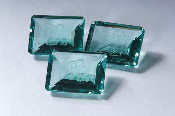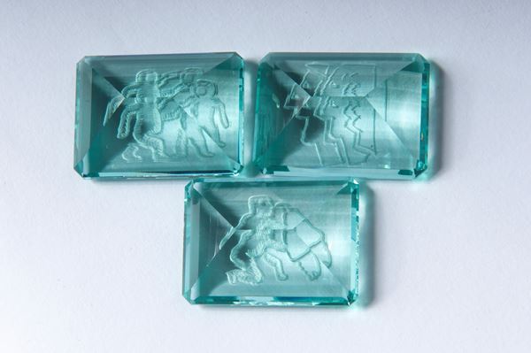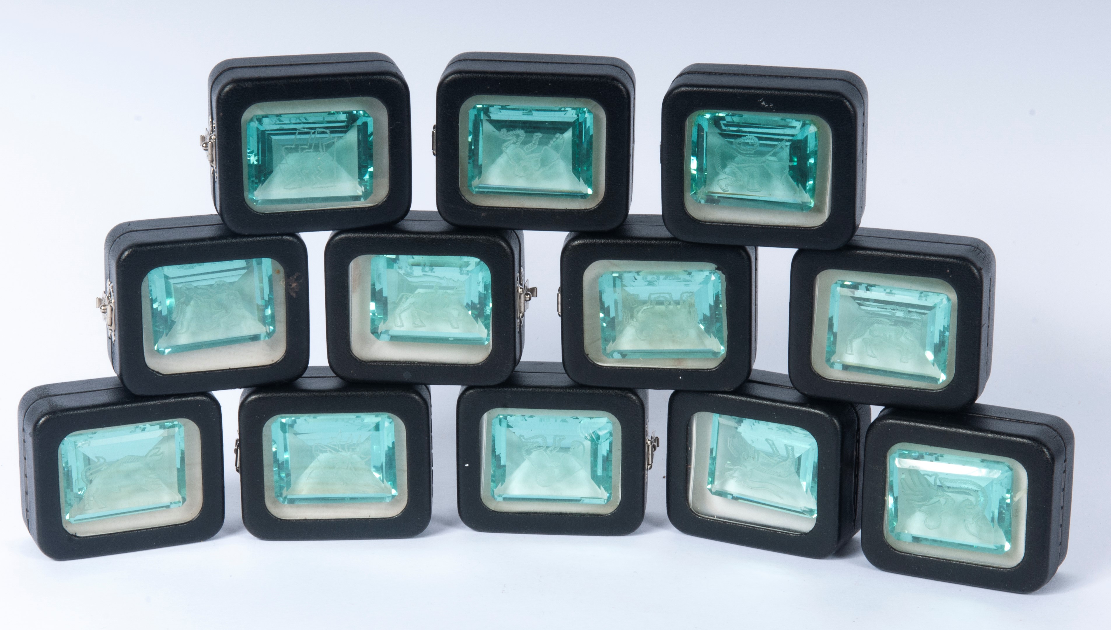 Lot of 12 crystals engraved with zodiac signs, 20th century