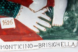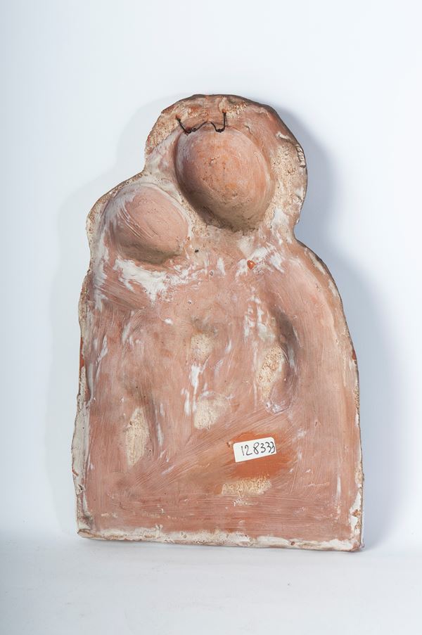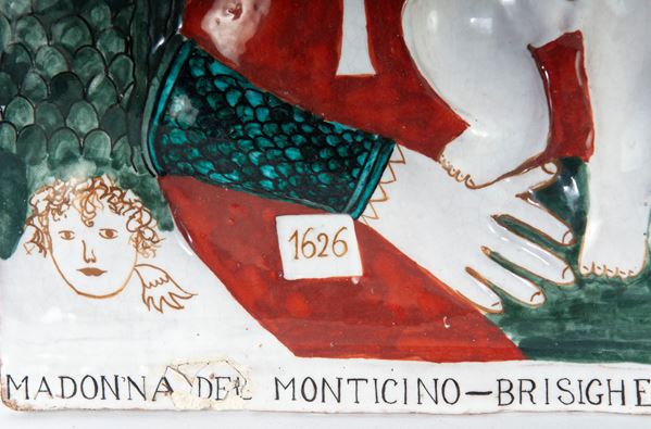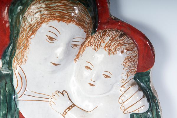 Polychrome ceramic relief. Probably made in Faenza, molded, second half of the 20th century
