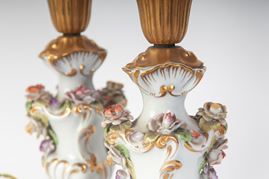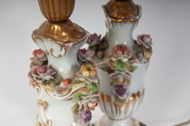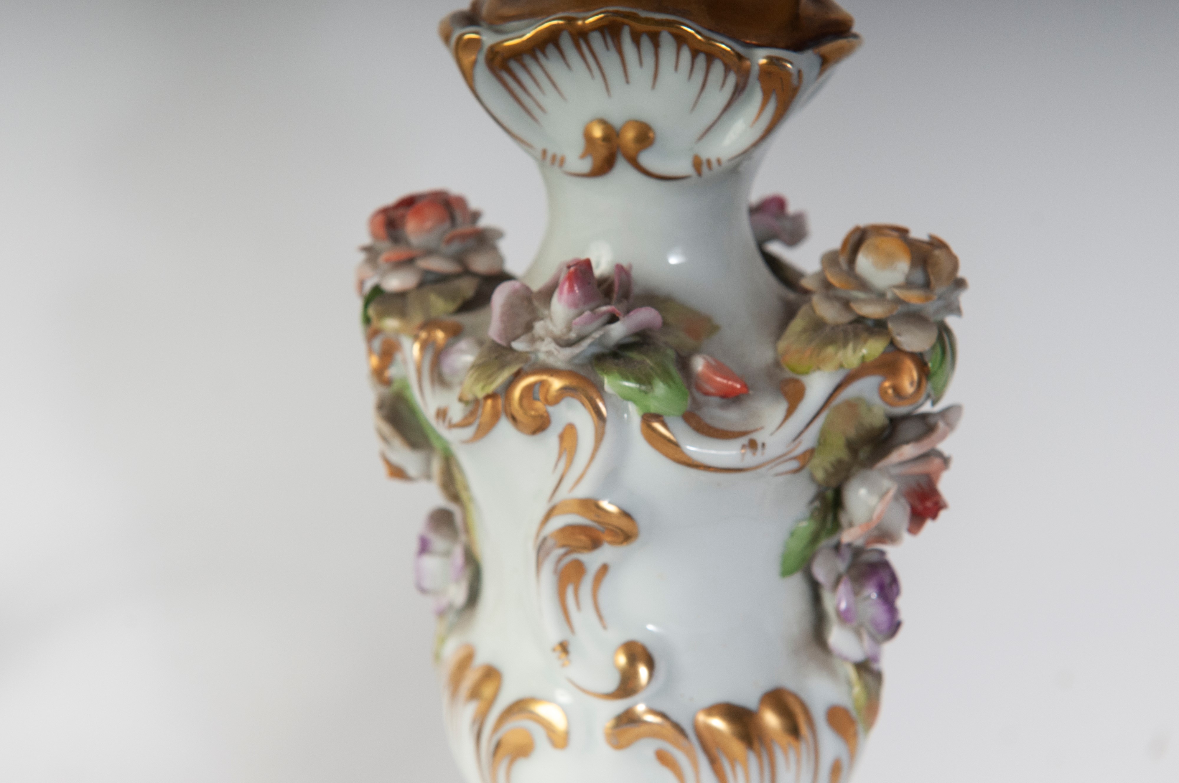 Baroque-style polychrome with floral slip and pure gold trim. Crowned "N" signature in blue underglaze.