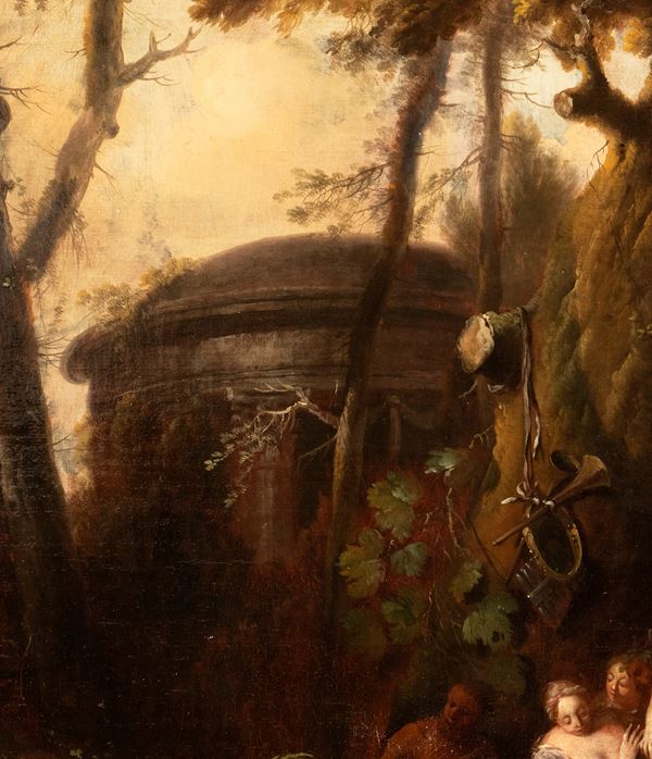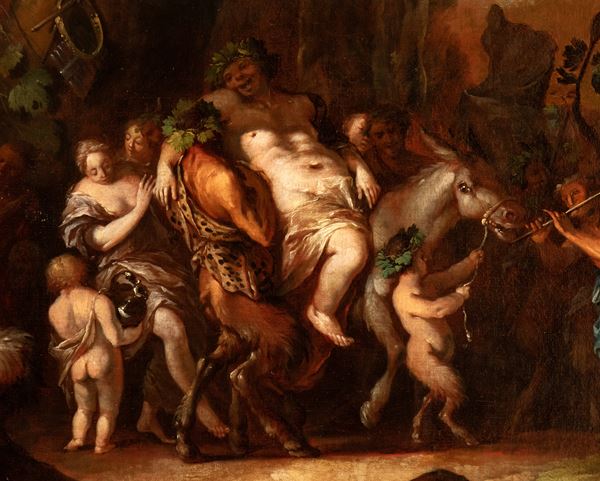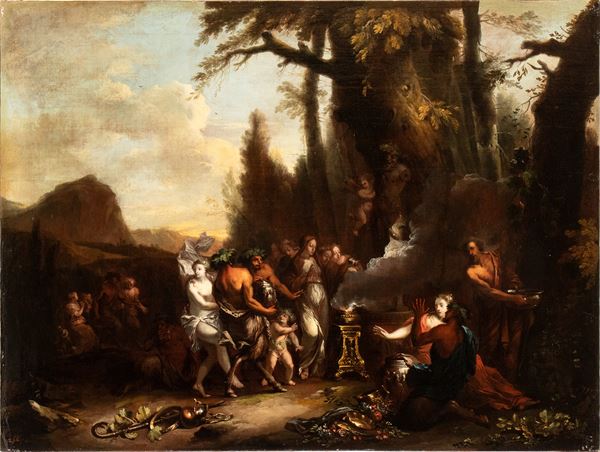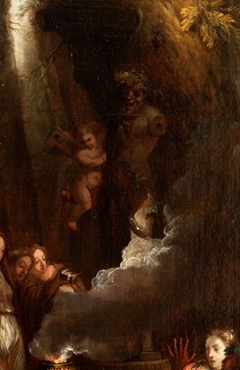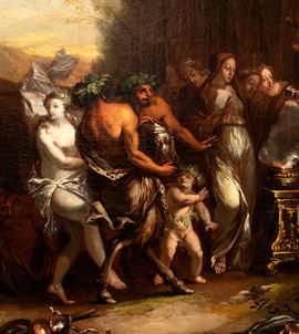 a) Bacchanal with drunken Bacchus; b) Bacchanal with a sacrifice scene. A pair of paintings